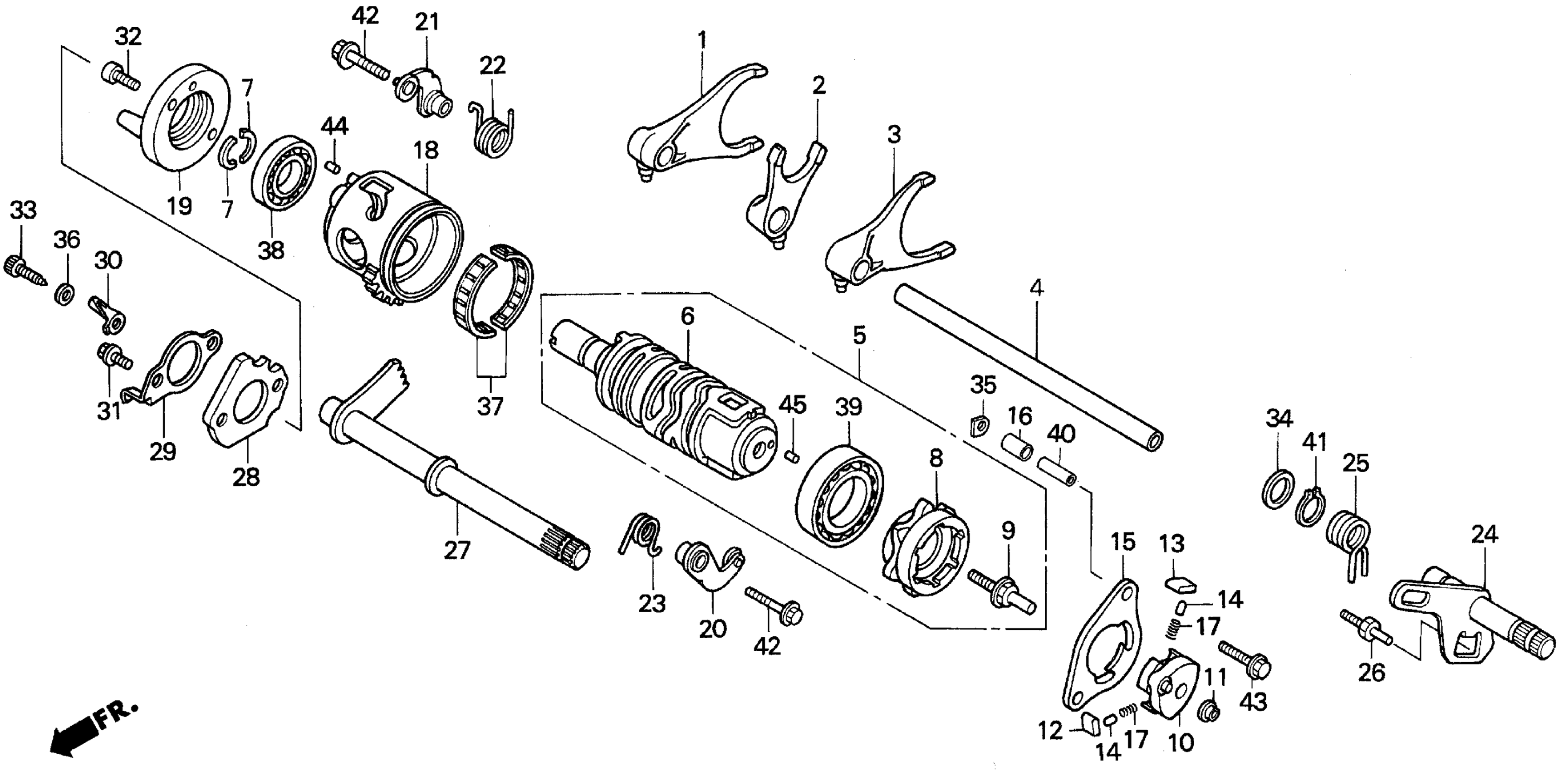 Honda TRX300EXA (96) FOURTRAX 300EX, JPN, VIN# JH2TE190-TK100001 GEARSHIFT DRUM Diagram