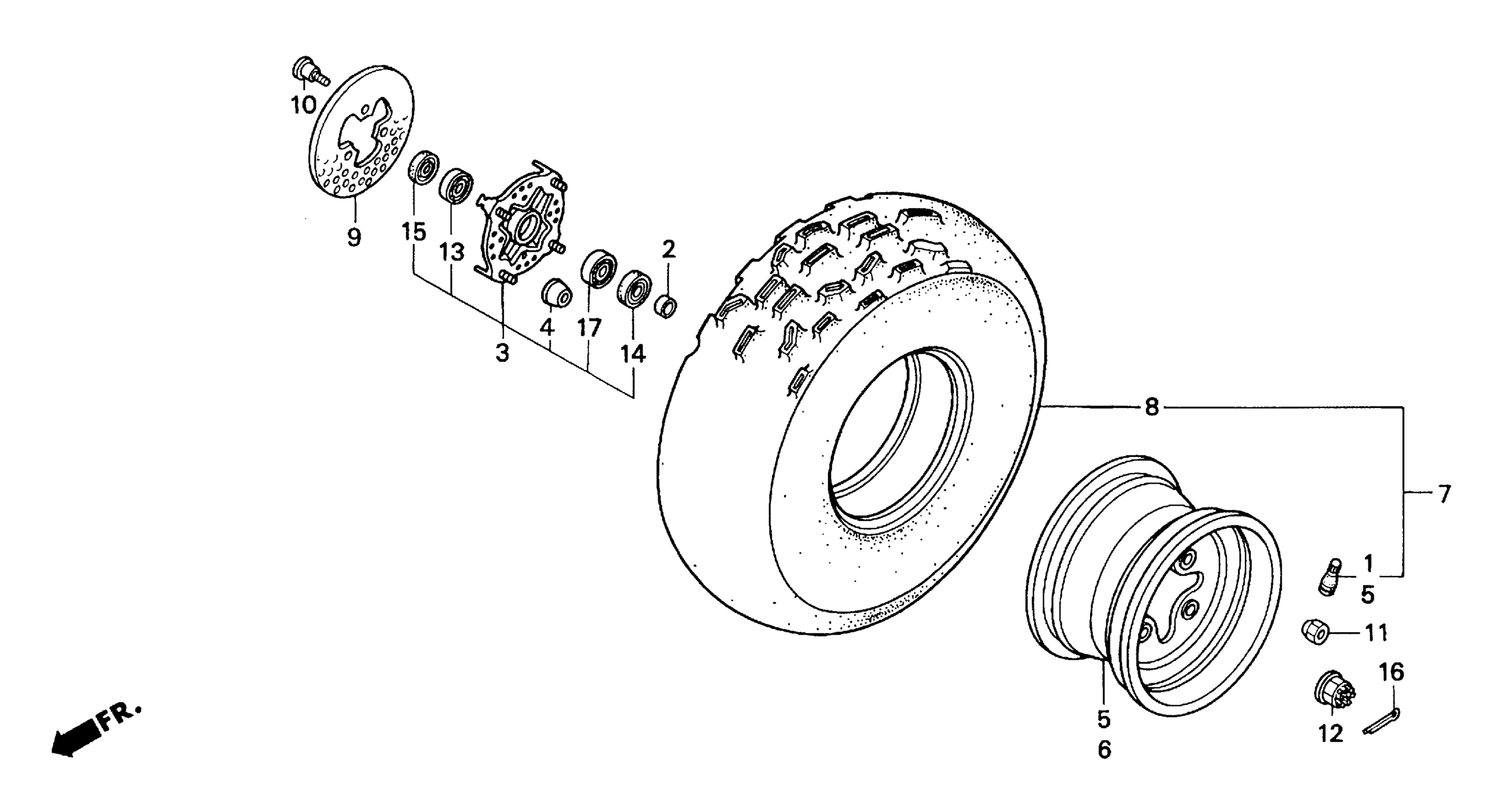 Honda TRX300EXA (97) FOURTRAX 300EX, JPN, VIN# JH2TE190-VK200001 FRONT WHEEL Diagram