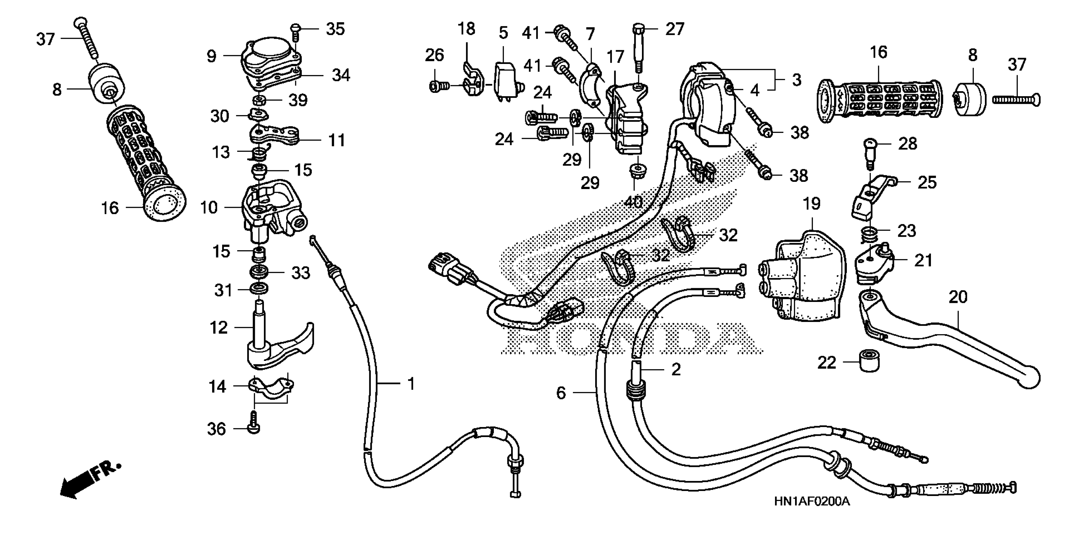 Honda TRX400EXA (07) TRX400EX, USA, VIN# 1HFTE230-74700001 TO 1HFTE230-74799999 HANDLE LEVER + SWITCH + CABLE (1) Diagram