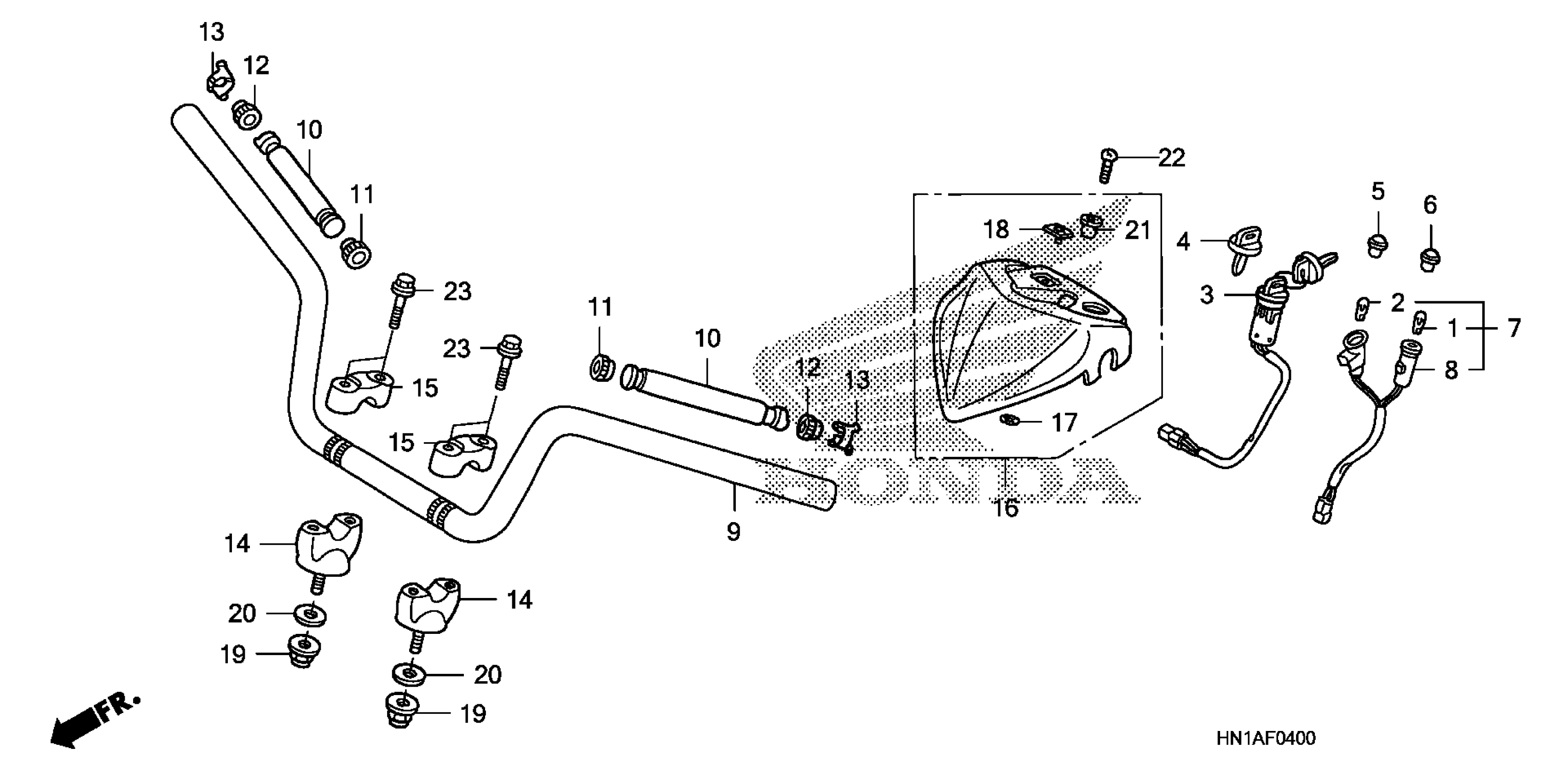 Honda TRX400XA (12) TRX400X, USA, VIN# 1HFTE230-C4300001 TO 1HFTE230-C4399999 HANDLEBAR Diagram