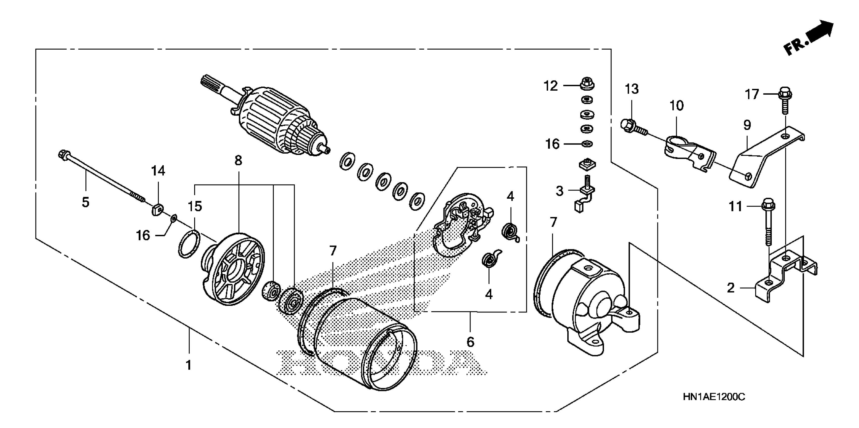 Honda TRX400XA (12) TRX400X, USA, VIN# 1HFTE230-C4300001 TO 1HFTE230-C4399999 STARTER MOTOR Diagram