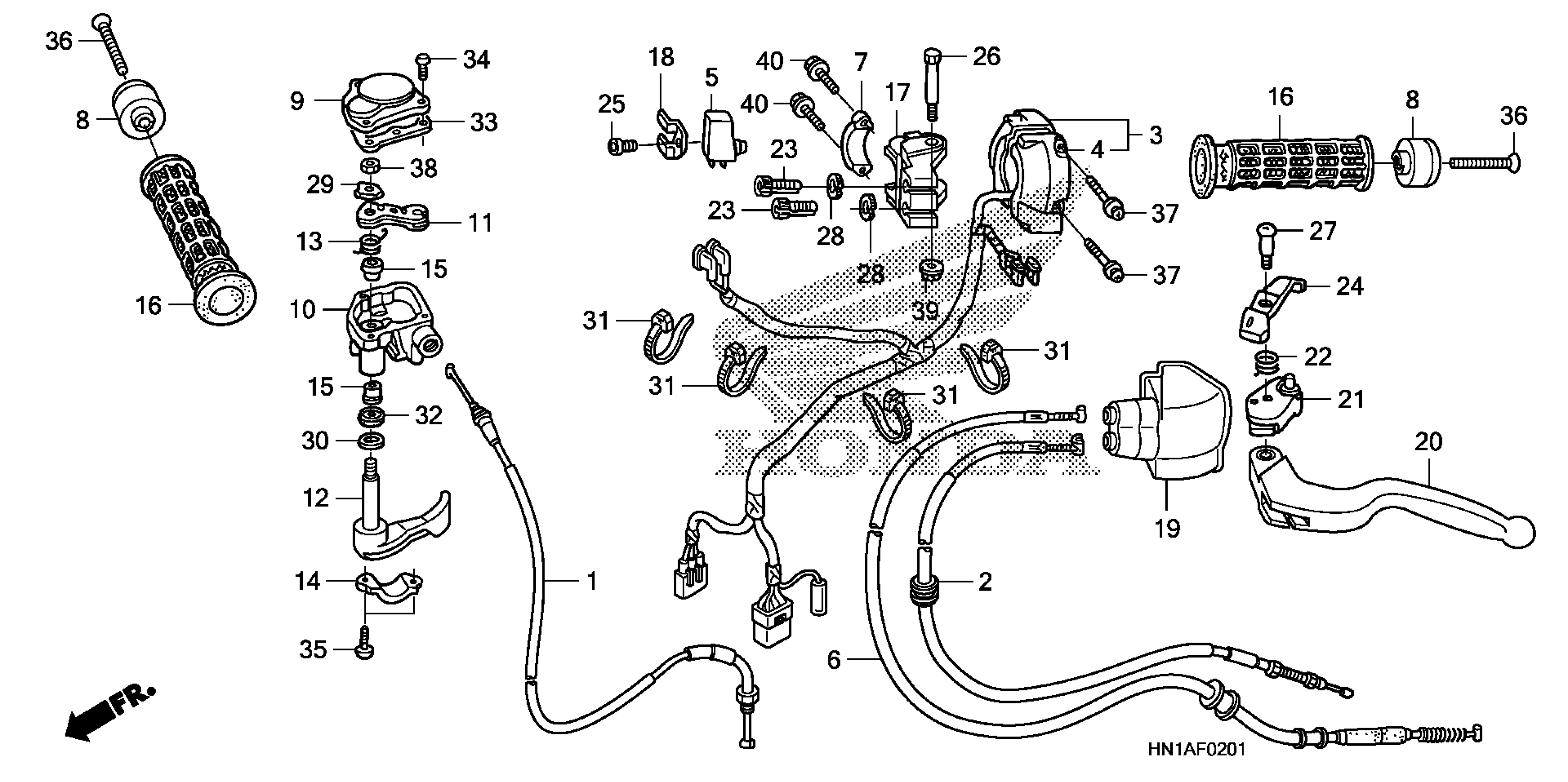 Honda TRX400XAC (14) TRX400X, USA, VIN# 1HFTE230-F4600001 HANDLE LEVER + SWITCH + CABLE (2) Diagram