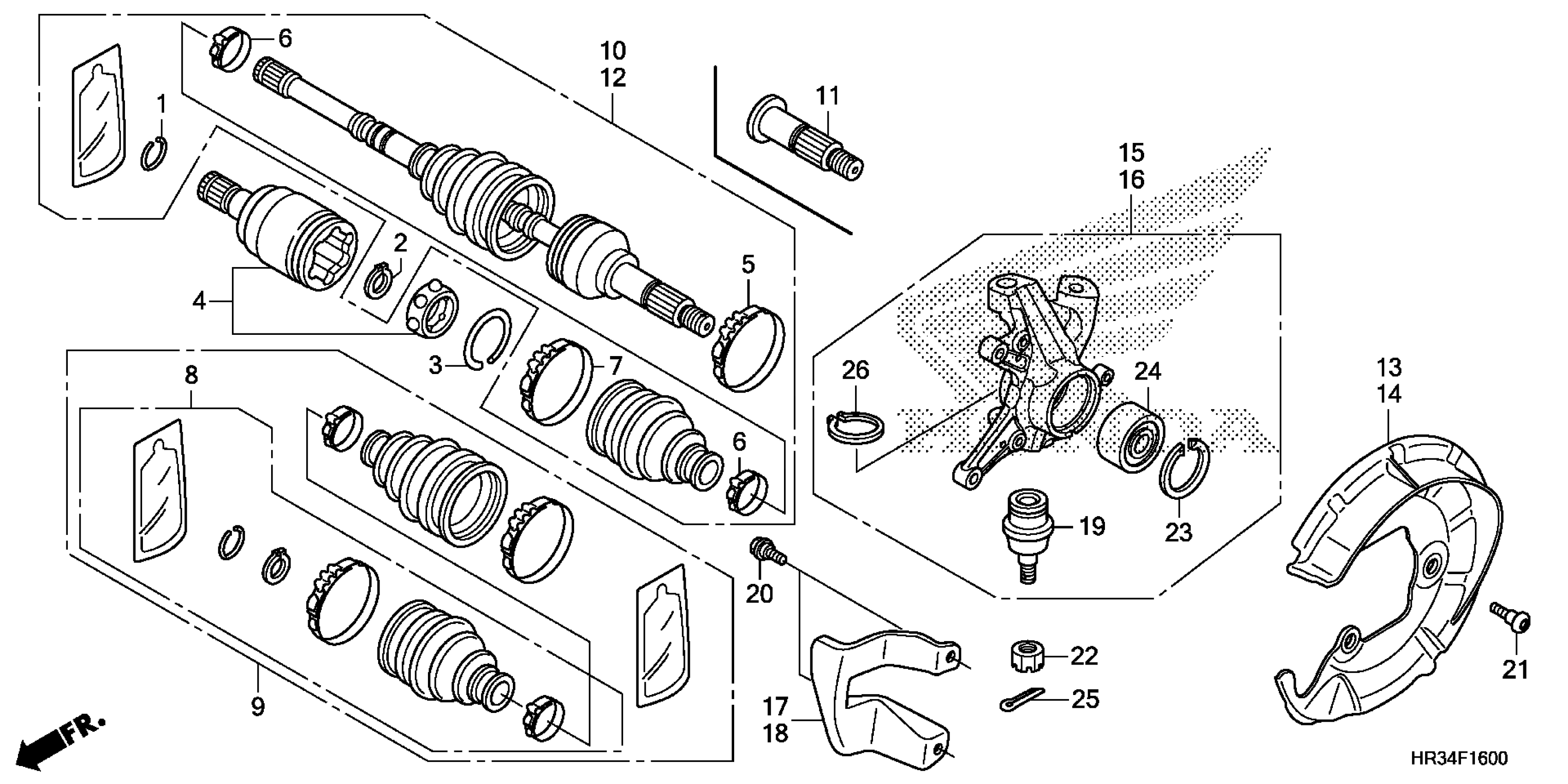 Honda TRX420FA2AC (14) TRX420FA2, USA, VIN# 1HFTE414-E4000001 FRONT KNUCKLE@FRONT DRIVE SHAFT Diagram