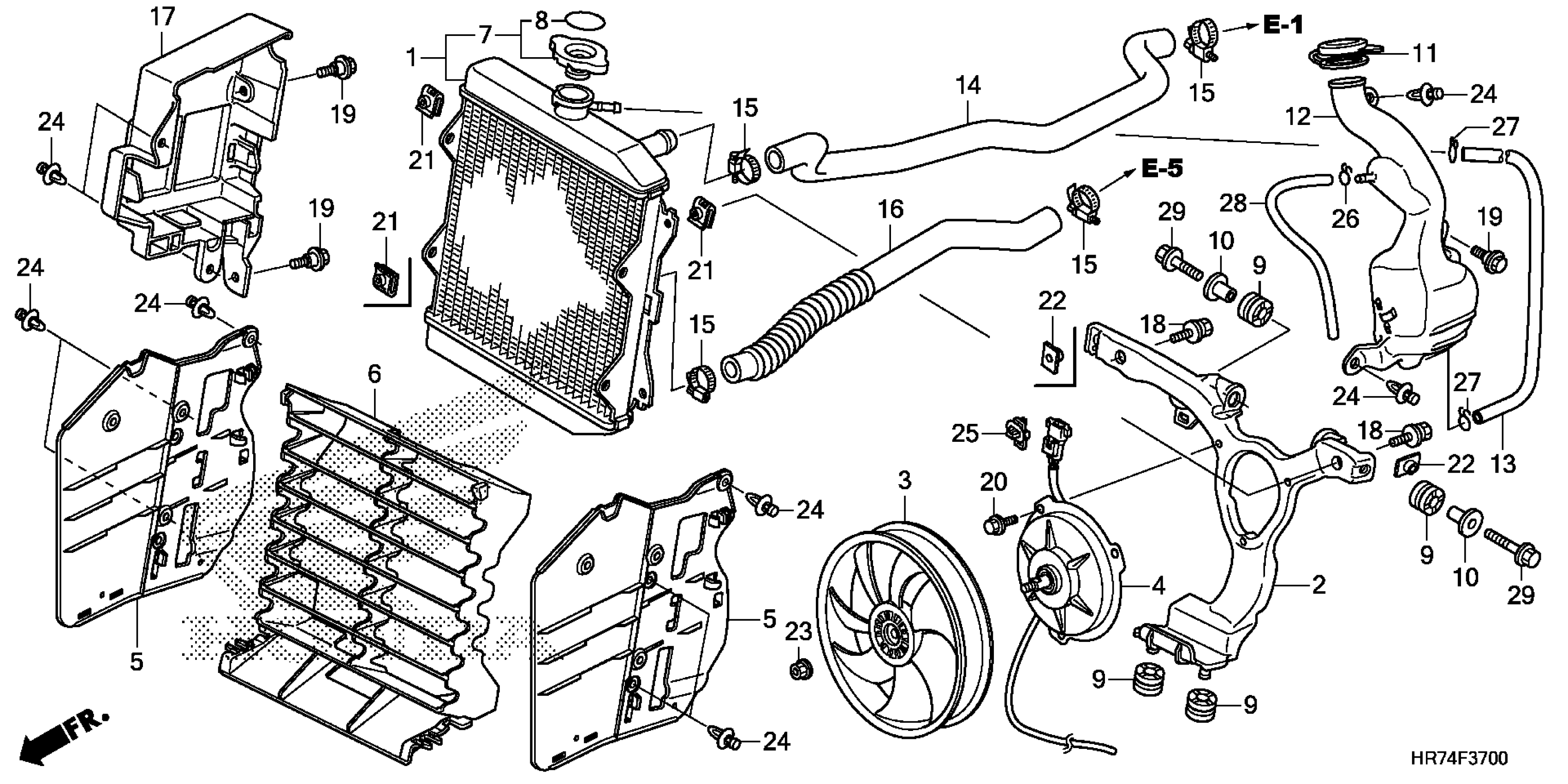 Honda TRX420FA5A (18) TRX420FA5, USA, VIN# 1HFTE47A-J4300001 RADIATOR Diagram