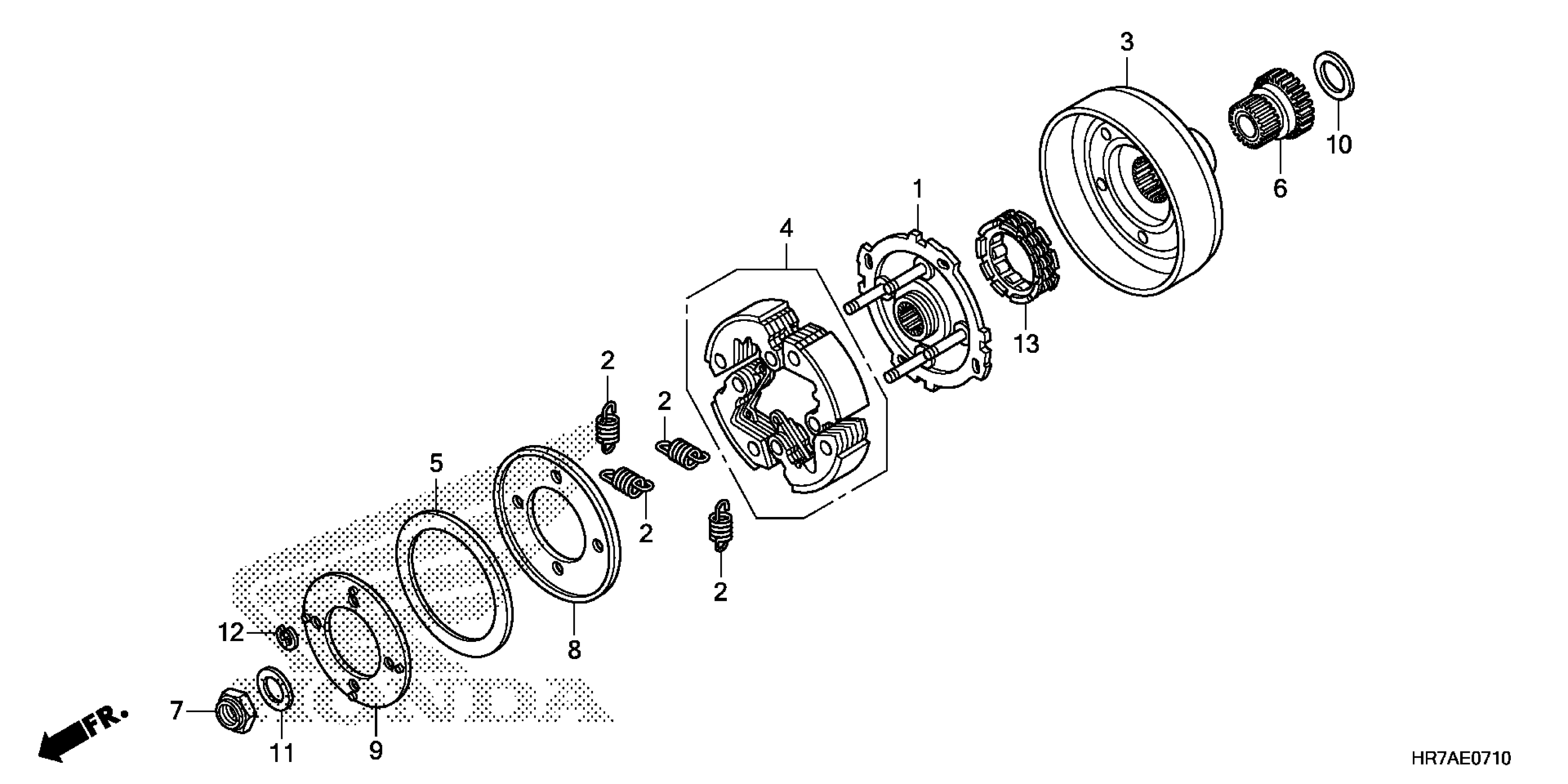 Honda TRX420FA5AC (19) ALL-TERRAIN VEHICLE (ATV), USA, VIN# 1HFTE473-K4400001 TO 1HFTE473-K4499999 STARTING CLUTCH Diagram