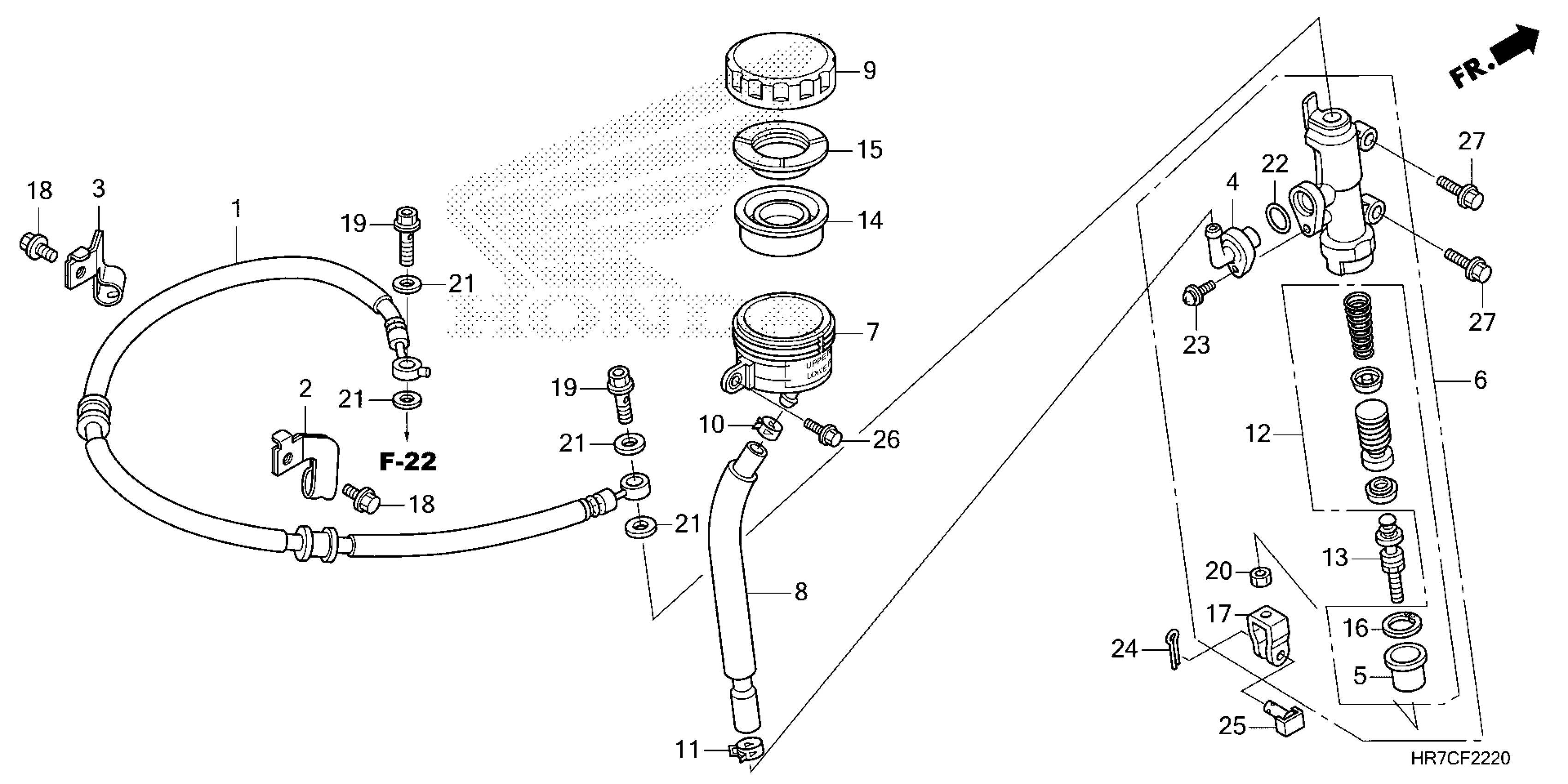 Honda TRX420FA6A (25) ALL-TERRAIN VEHICLE (ATV), USA, VIN# 1HFTE472-SJ100001 TO 1HFTE472-SJ199999 REAR BRAKE MASTER CYLINDER Diagram