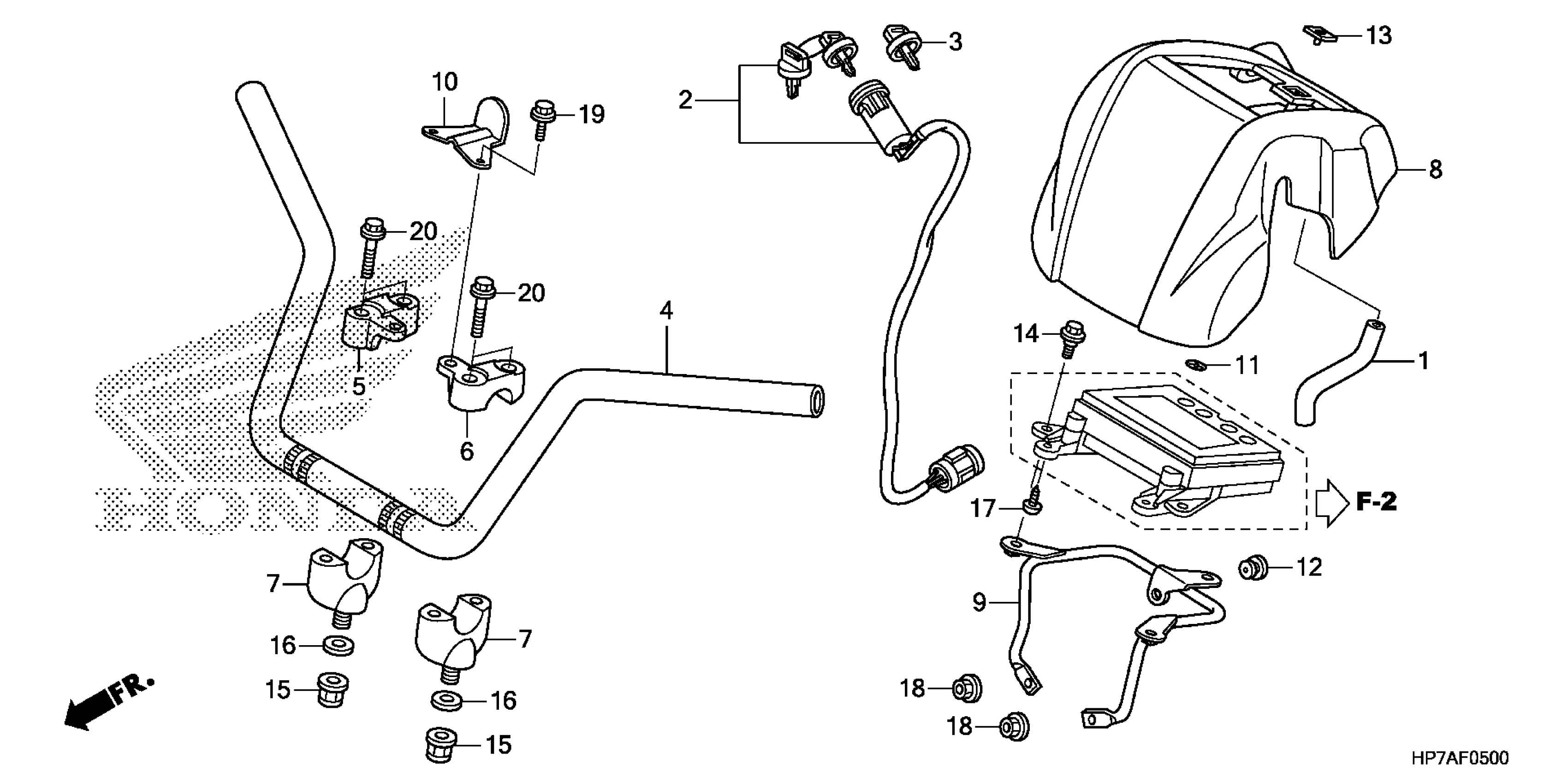 Honda TRX420FAAC (14) TRX420FA, USA, VIN# 1HFTE370-E4500001 HANDLEBAR Diagram