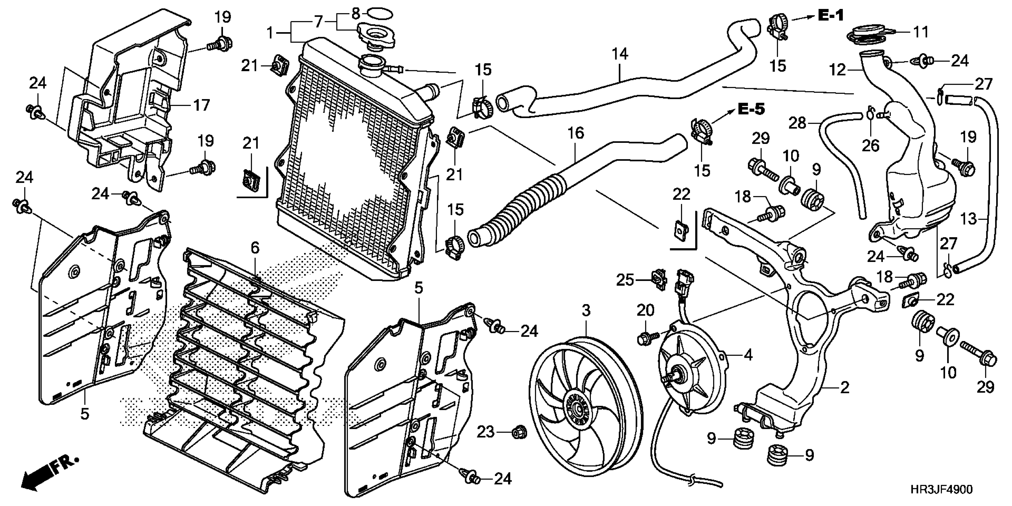 Honda TRX420FE1AC (18) ALL-TERRAIN VEHICLE (ATV), USA, VIN# 1HFTE406-J4400001 RADIATOR Diagram