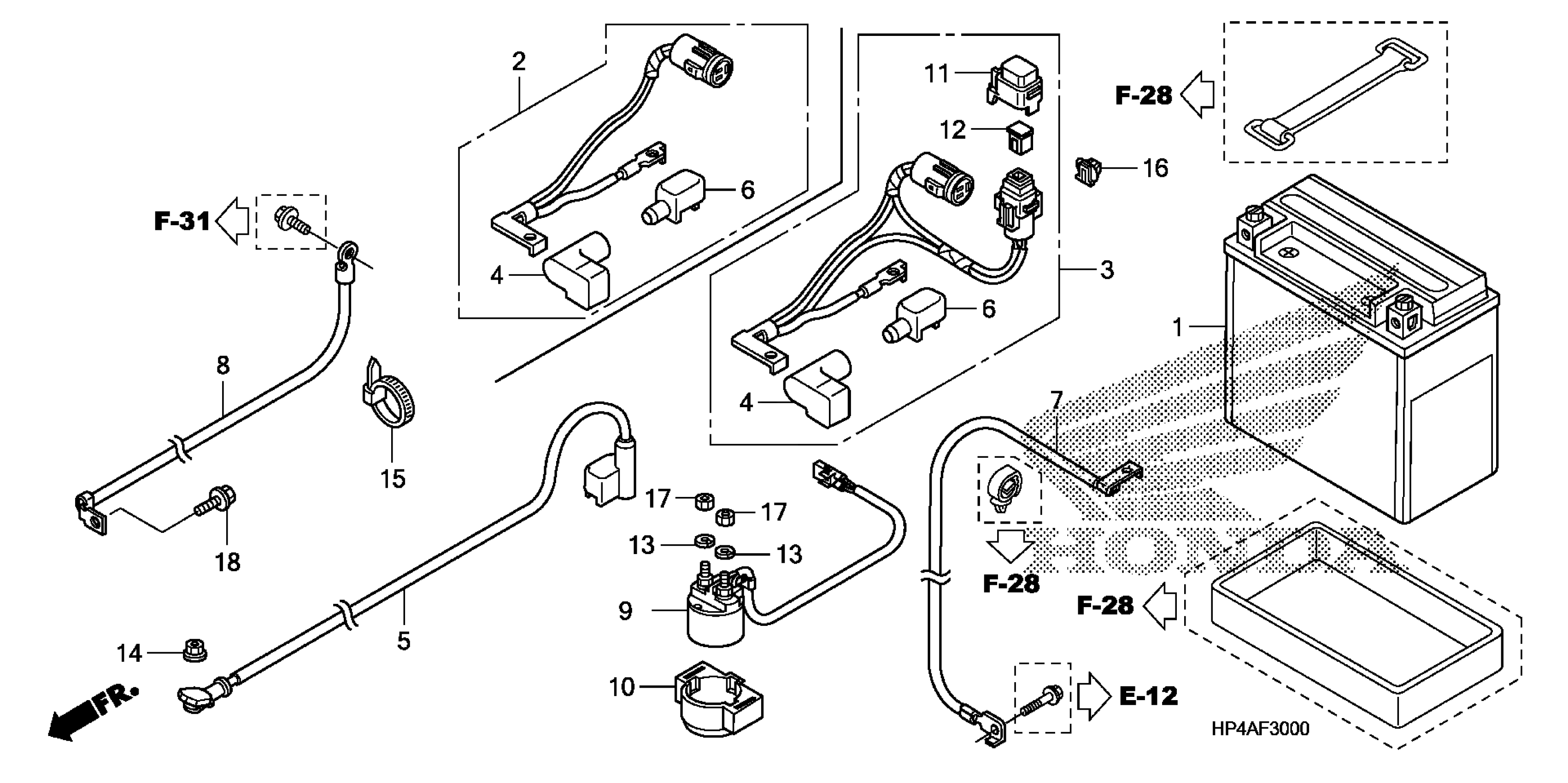 Honda TRX420FE2A (09) RANCHER ES, USA, VIN# 1HFTE357-94200001 TO 1HFTE357-94299999 BATTERY Diagram