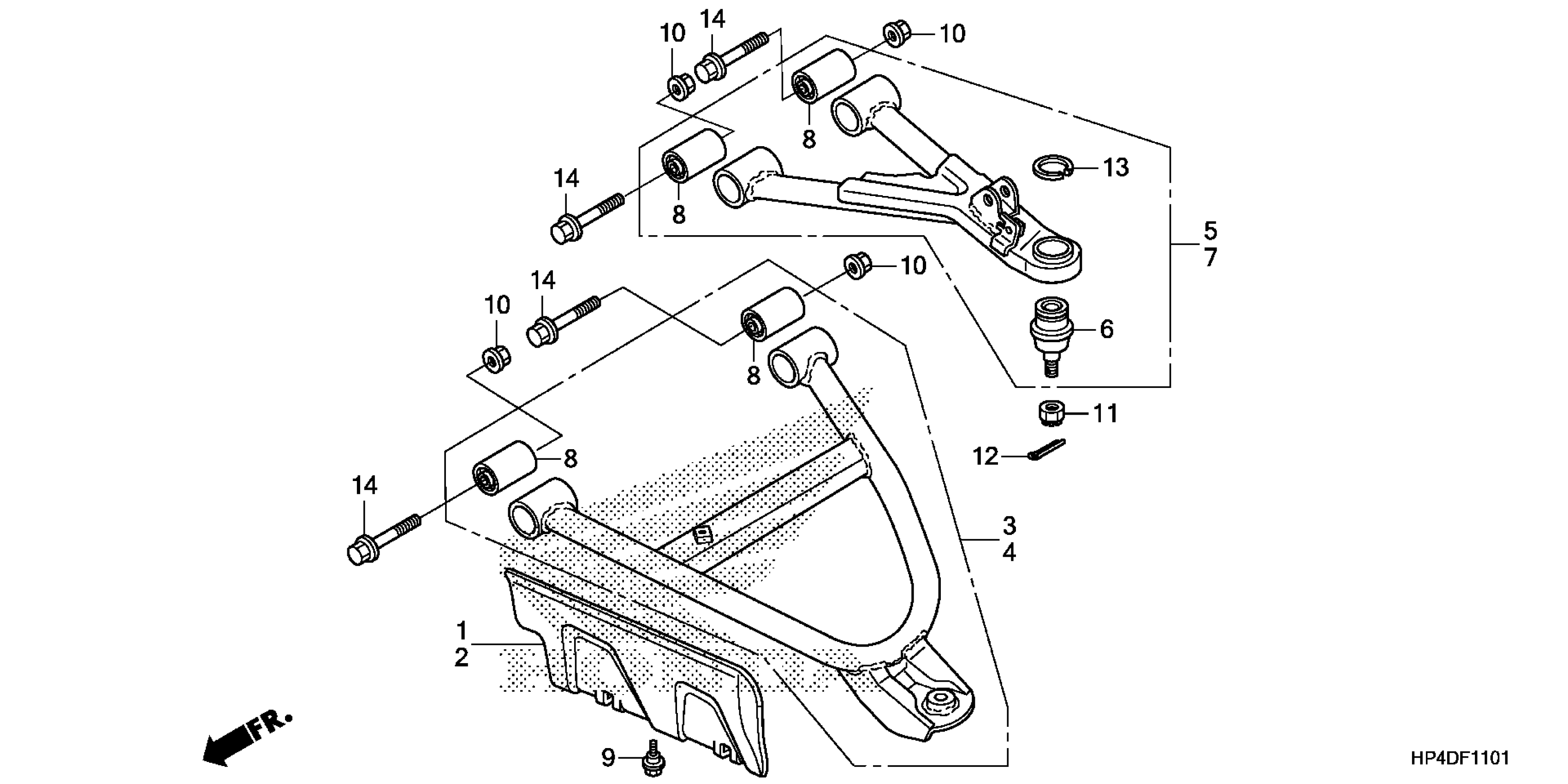 Honda TRX420FE2AC (13) RANCHER ES, USA, VIN# 1HFTE357-D4600001 FRONT ARM (4WD) Diagram