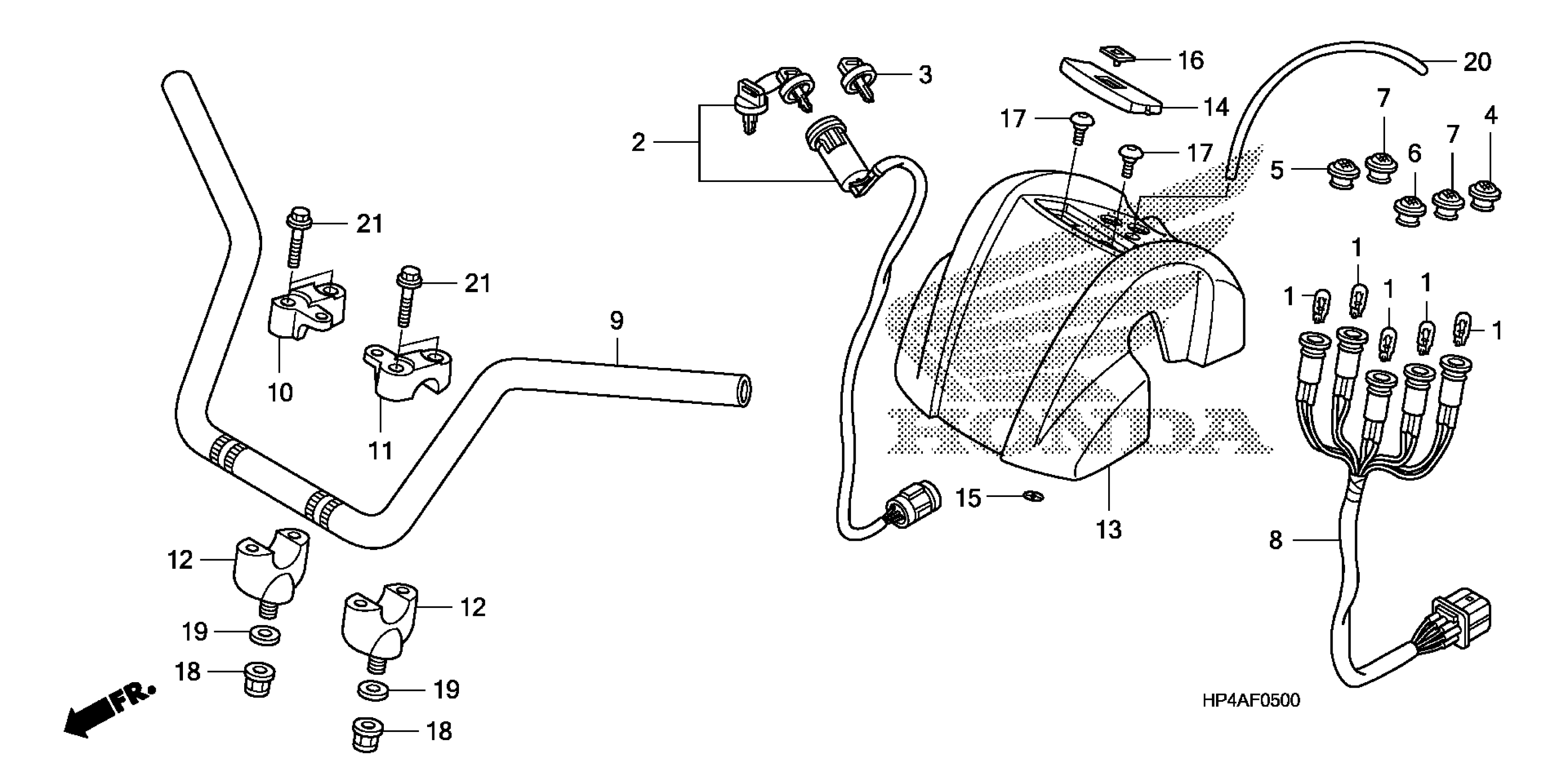 Honda TRX420FM2A (10) ALL-TERRAIN VEHICLE (ATV), USA, VIN# 1HFTE359-A4300001 HANDLEBAR (1) Diagram