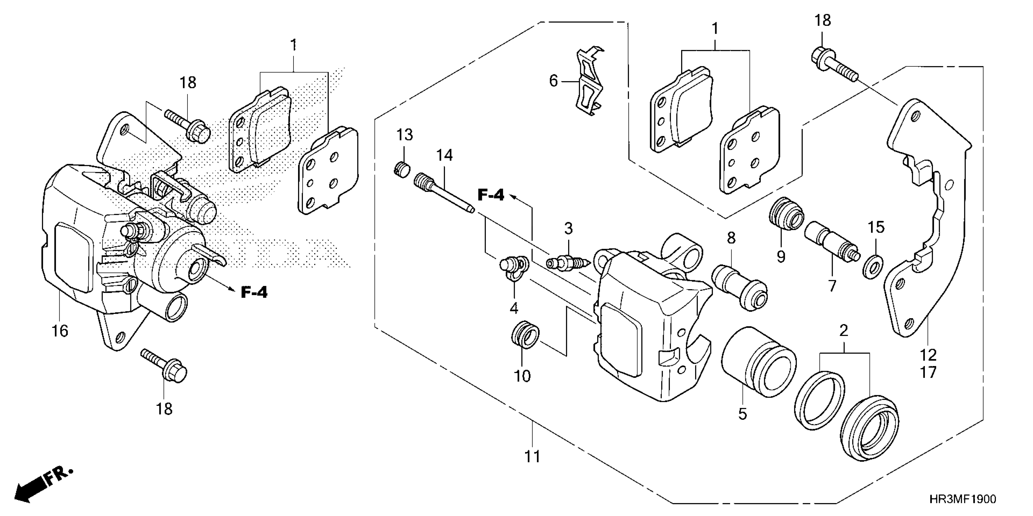 Honda TRX420FM2AC (21) ALL-TERRAIN VEHICLE (ATV), USA, VIN# 1HFTE40D-M4700001 FRONT BRAKE CALIPER Diagram