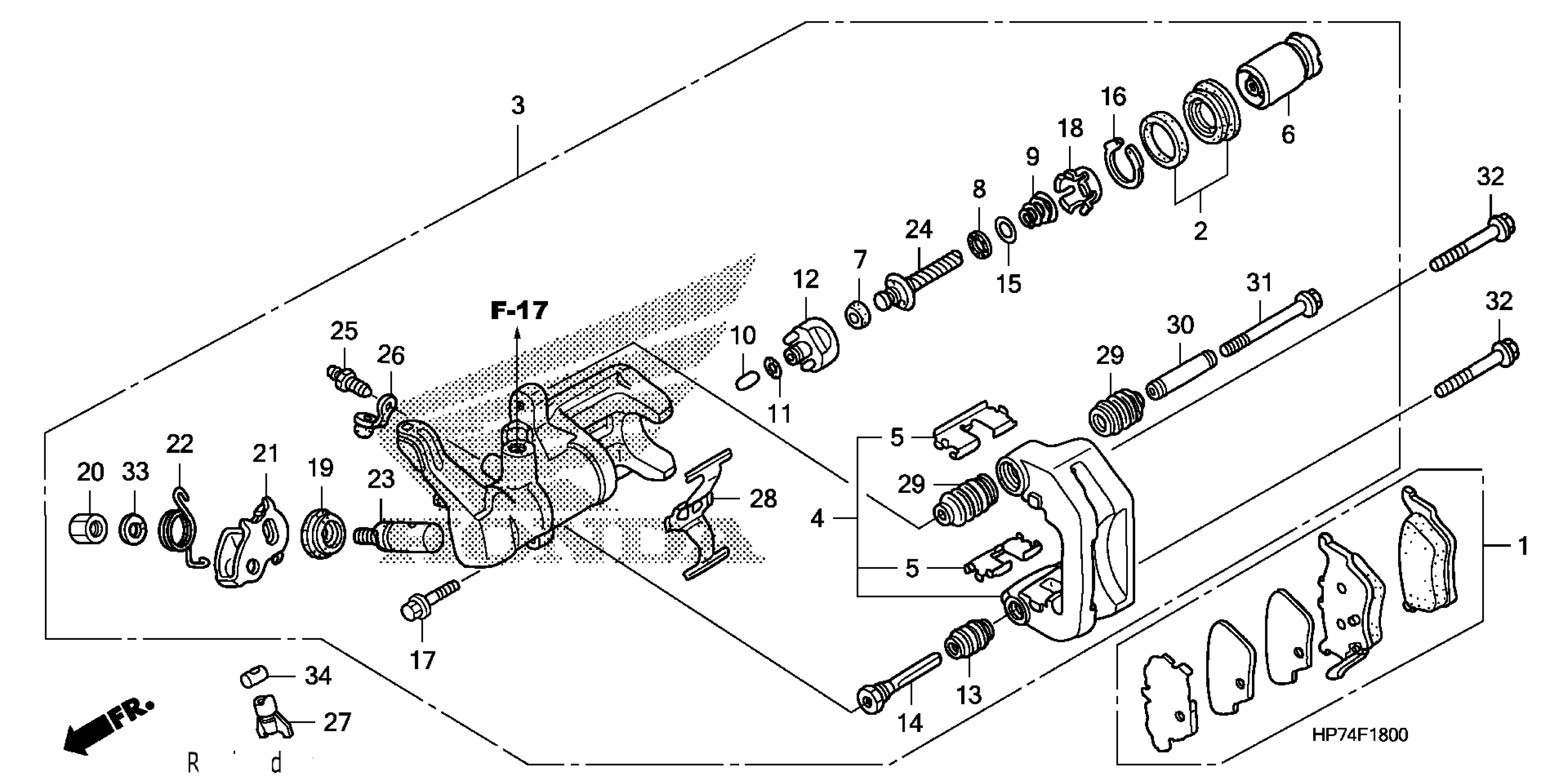 Honda TRX420FPAA (09) FOURTRAX RANCHER AT, USA, VIN# 1HFTE372-94000001 TO 1HFTE372-94099999 REAR BRAKE CALIPER Diagram