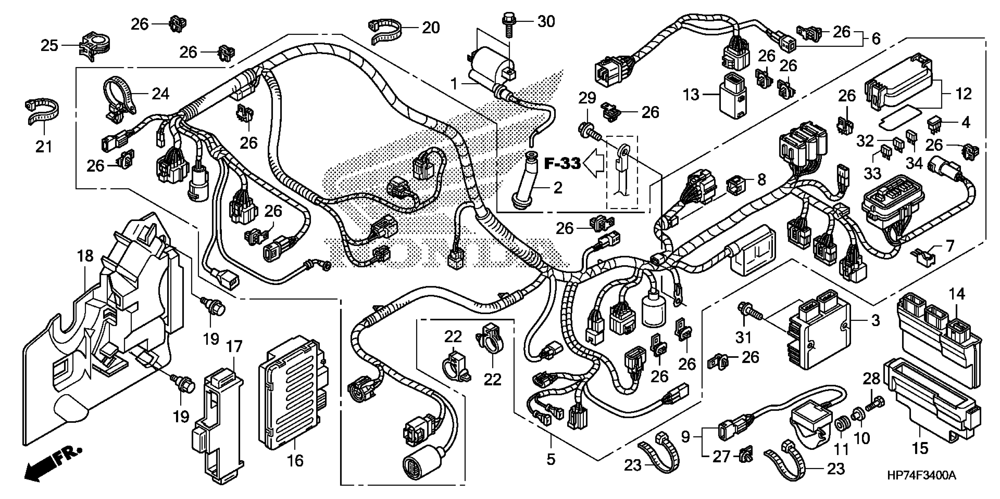 Honda TRX420FPAA (09) FOURTRAX RANCHER AT, USA, VIN# 1HFTE372-94000001 TO 1HFTE372-94099999 WIRE HARNESS Diagram
