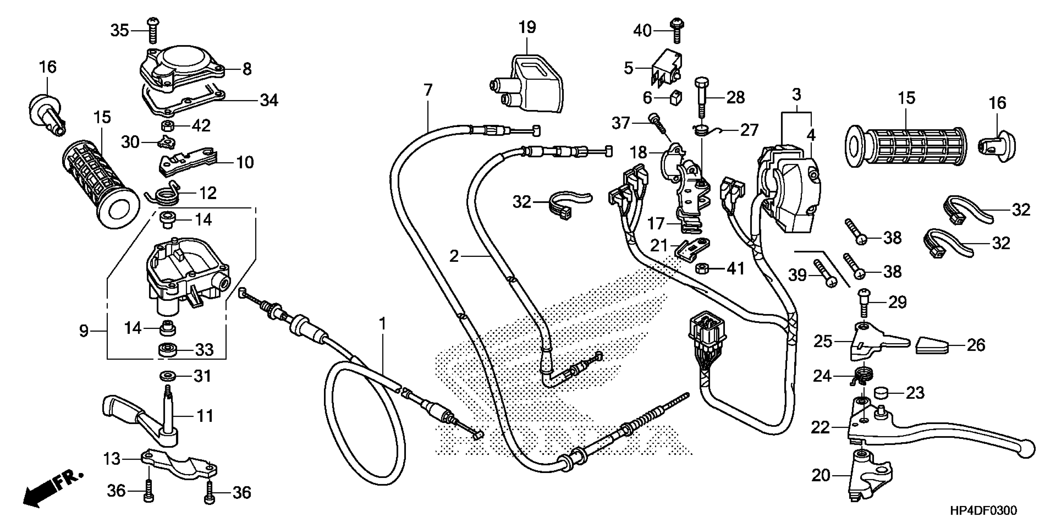 Honda TRX420FPE2AC (13) RANCHER ES, USA, VIN# 1HFTE35M-D4600001 HANDLE LEVER + SWITCH + CABLE Diagram