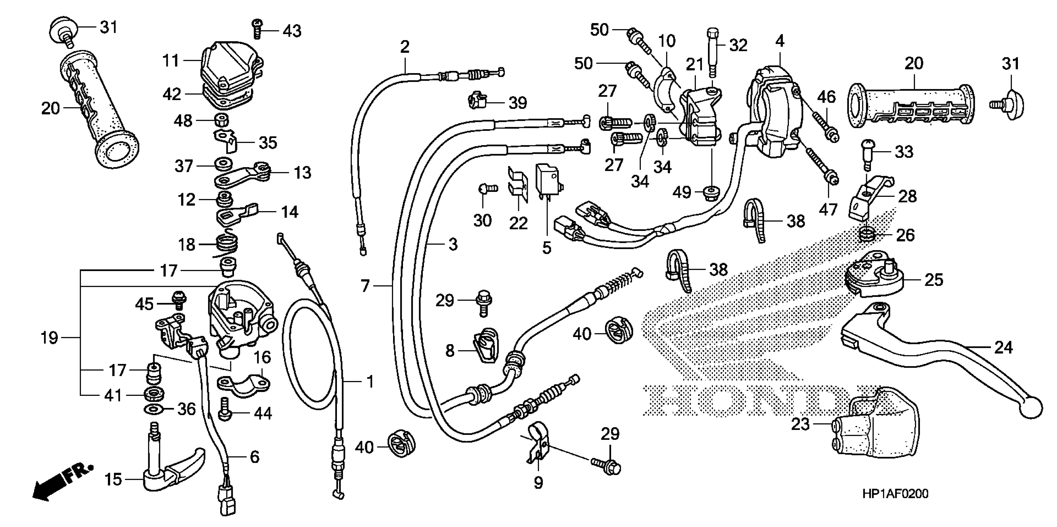 Honda TRX450ER3A (09) ALL-TERRAIN VEHICLE (ATV), JPN, VIN# JH2TE327-9K200001 TO JH2TE327-9K299991 HANDLE LEVER + SWITCH + CABLE Diagram