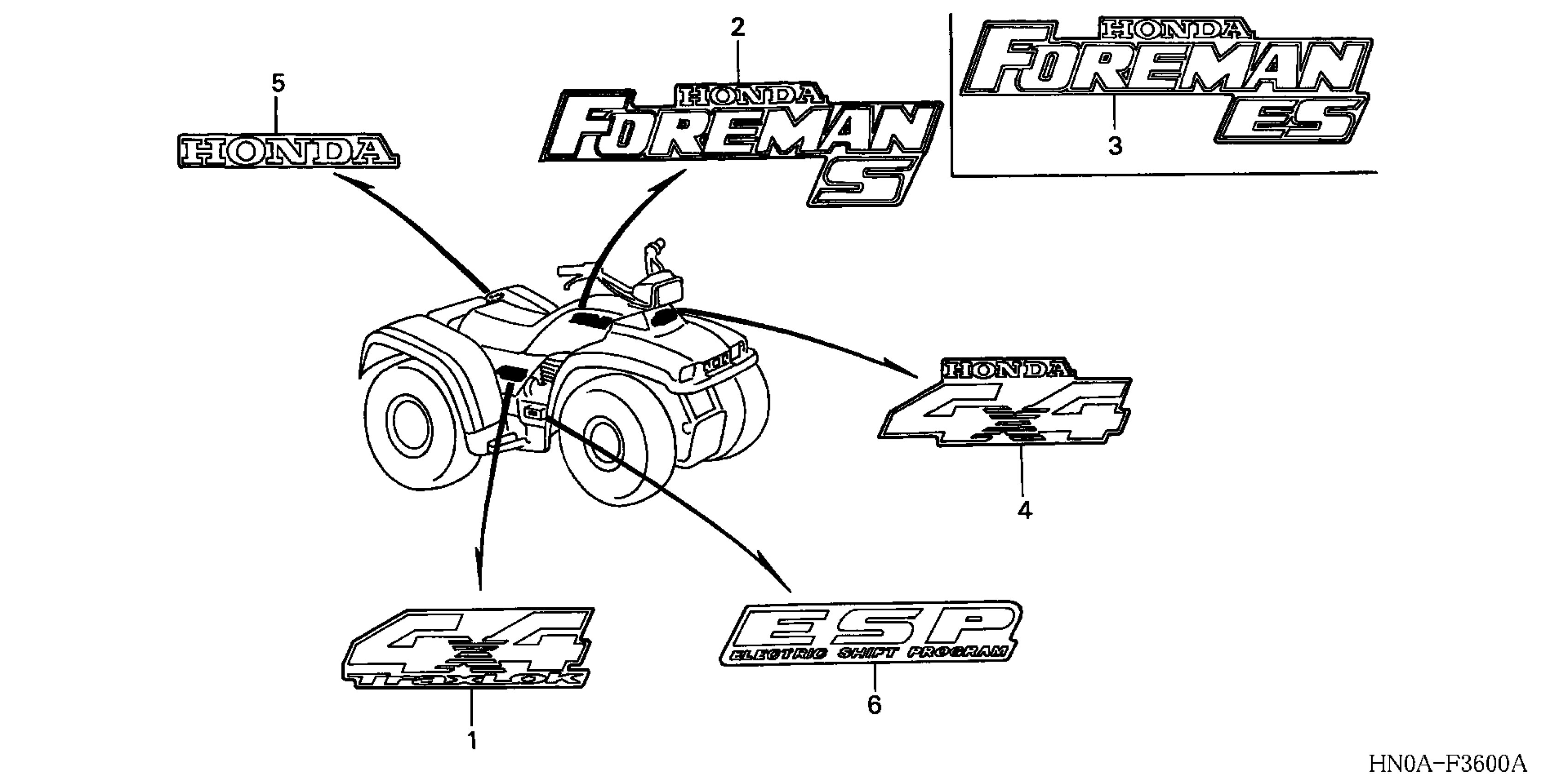 Honda TRX450FMA (04) FOURTRAX FOREMAN S, USA, VIN# 478TE220-44500001 MARKS Diagram