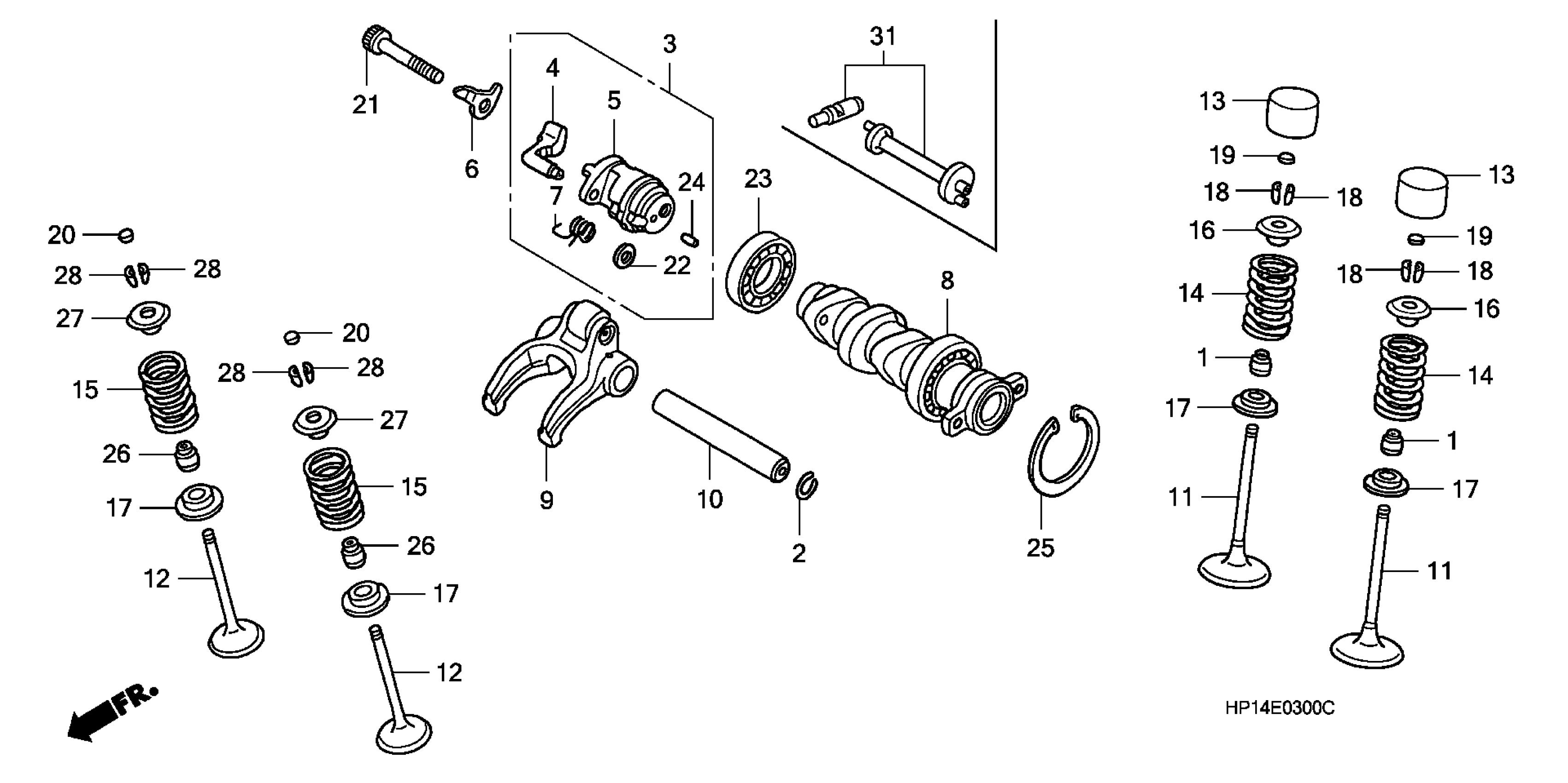 Honda TRX450RA (05) ALL-TERRAIN VEHICLE (ATV), USA, VIN# 1HFTE300-5A100001 TO 1HFTE300-5A199999 CAMSHAFT + VALVE Diagram