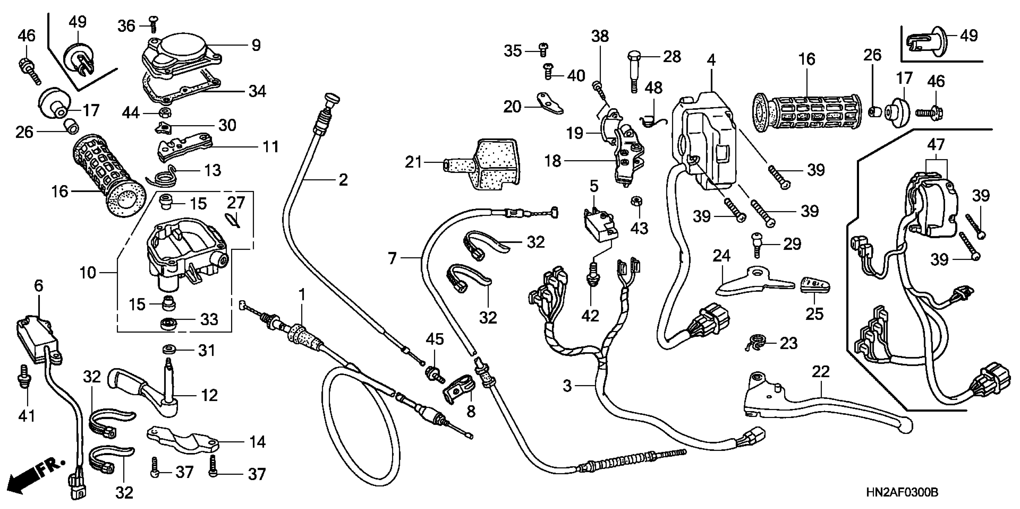 Honda TRX500FA2A (08) FOURTRAX FOREMAN RUBICON, USA, VIN# 1HFTE266-84700001 HANDLE LEVERS + SWITCHES + CABLES Diagram