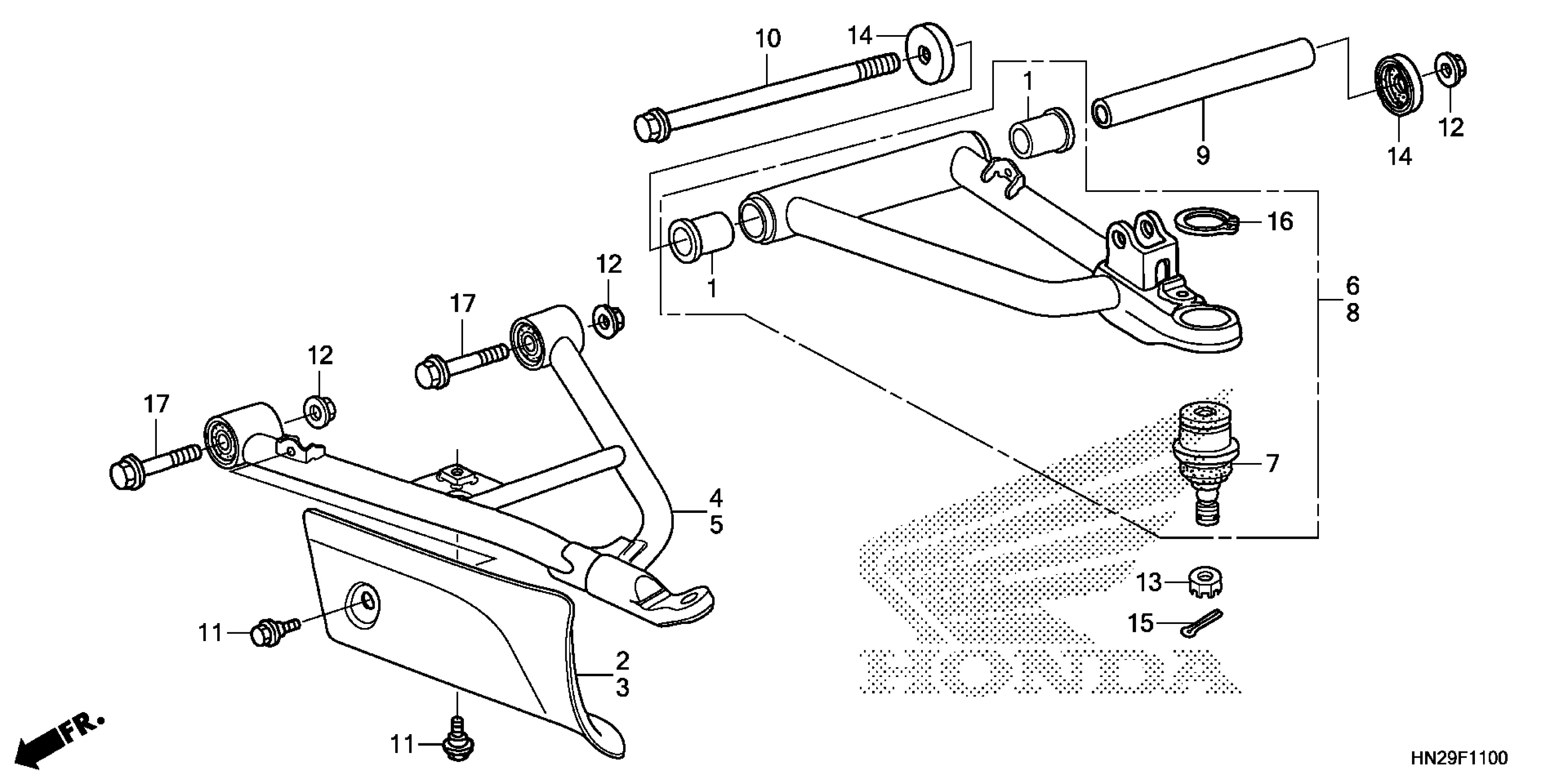 Honda TRX500FA2A (12) FOURTRAX RUBICON, USA, VIN# 1HFTE266-C4200001 TO 1HFTE266-C4299999 FRONT ARM Diagram