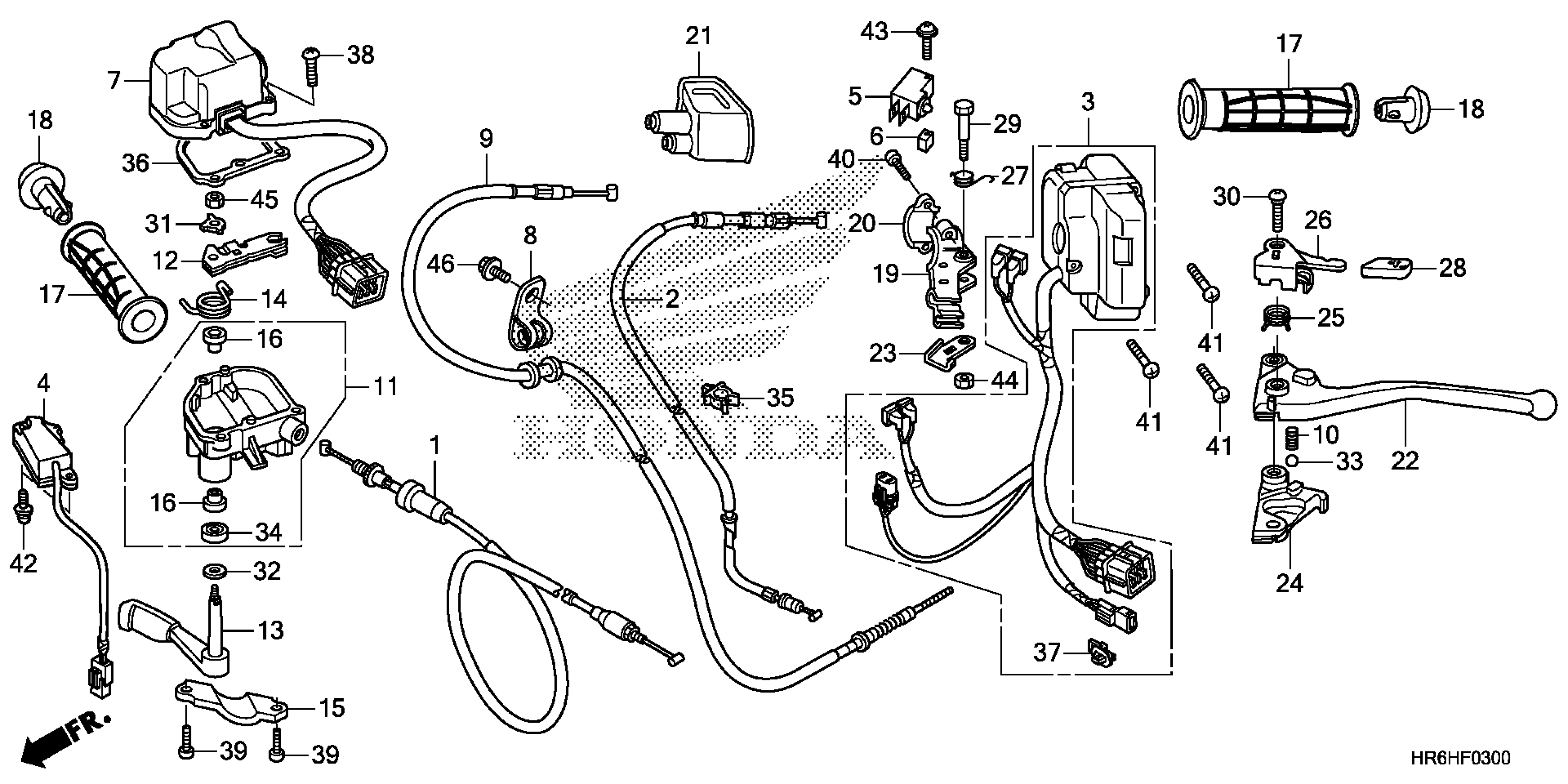 Honda TRX500FA5A (18) TRX500FA5, USA, VIN# 1HFTE46E-J4300001 SWITCH + CABLE Diagram