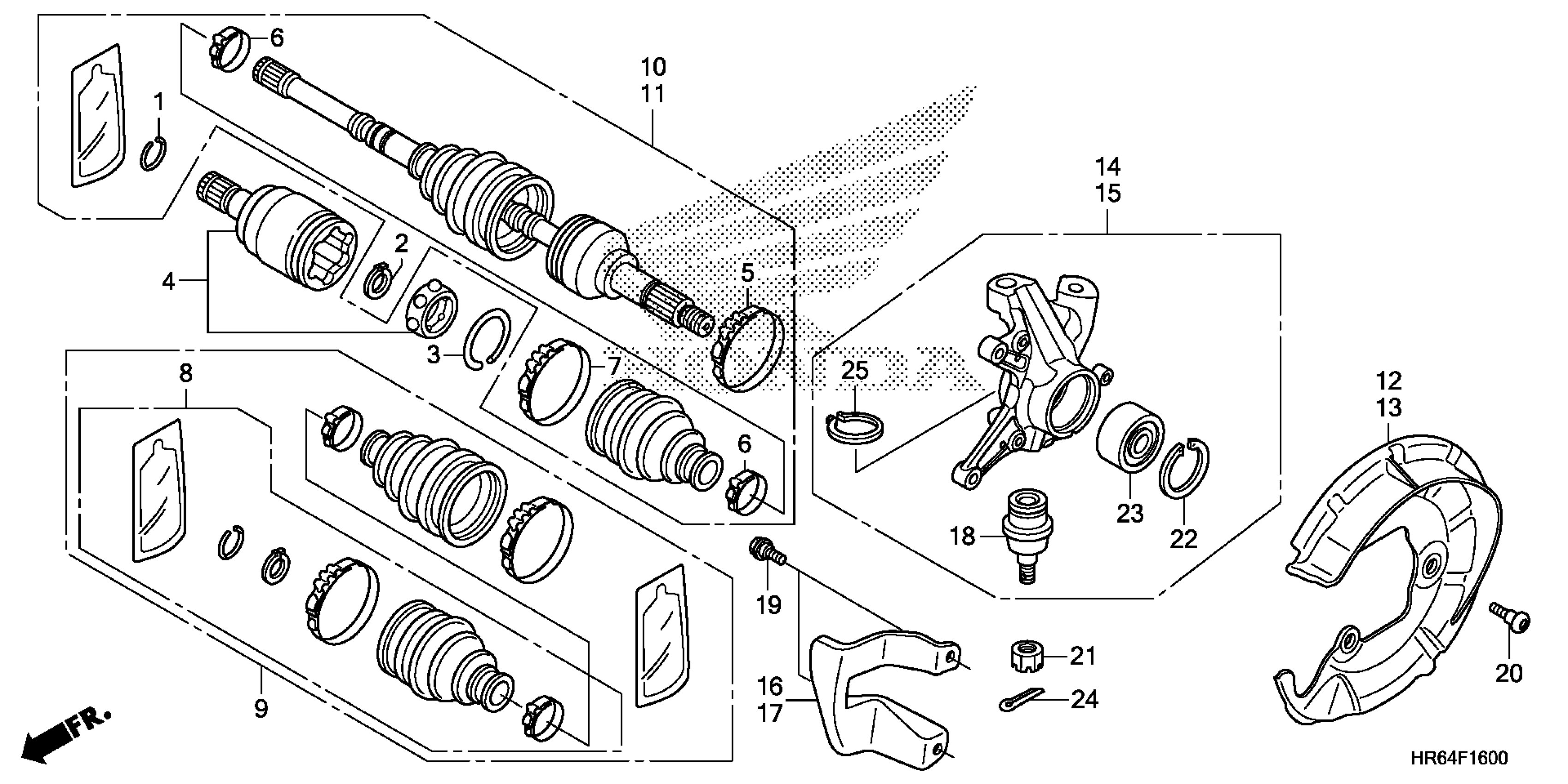 Honda TRX500FA5AC (16) TRX600FA5, USA, VIN# 1HFTE460-G4100001 FRONT KNUCKLE@FRONT DRIVE SHAFT Diagram