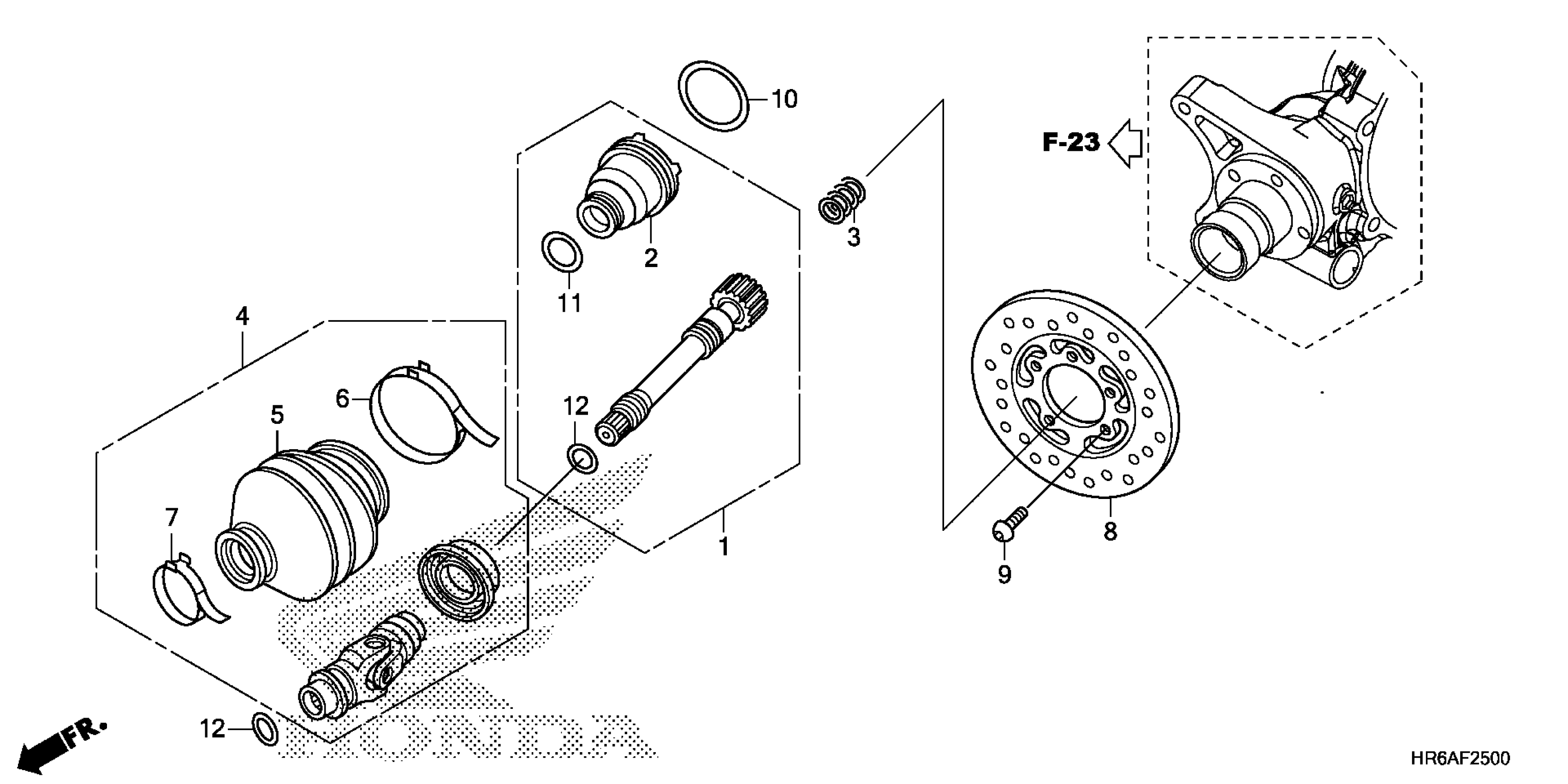 Honda TRX500FA5AC (19) ALL-TERRAIN VEHICLE (ATV), USA, VIN# 1HFTE463-K4400001 PROPELLER SHAFT Diagram