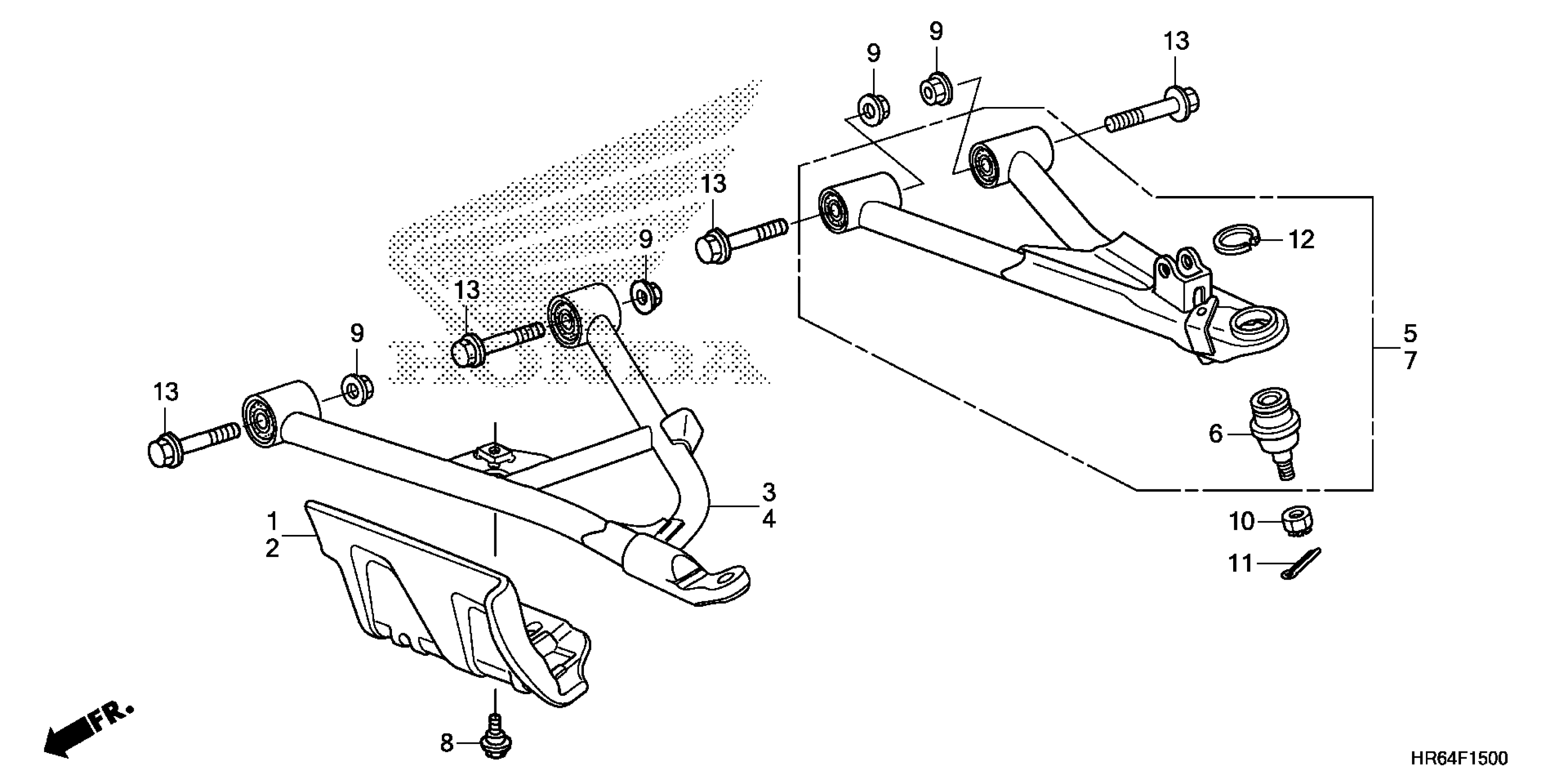 Honda TRX500FA62AC (15) TRX500FA6, USA, VIN# 1HFTE461-F4000001 TO 1HFTE461-F4099999 FRONT ARM Diagram