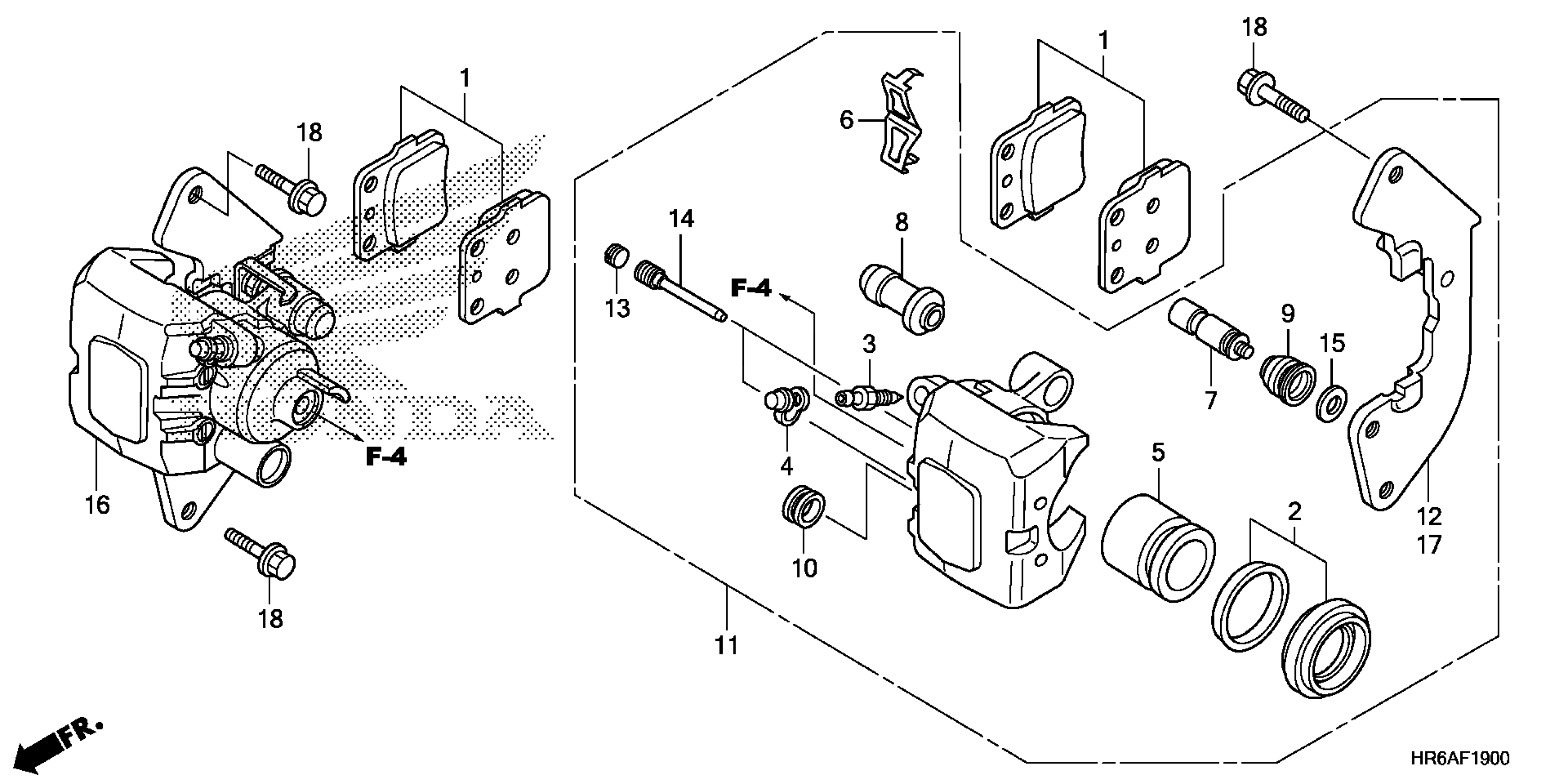 Honda TRX500FA72AC (19) ALL-TERRAIN VEHICLE (ATV), USA, VIN# 1HFTE52C-K4400001 FRONT BRAKE CALIPER Diagram