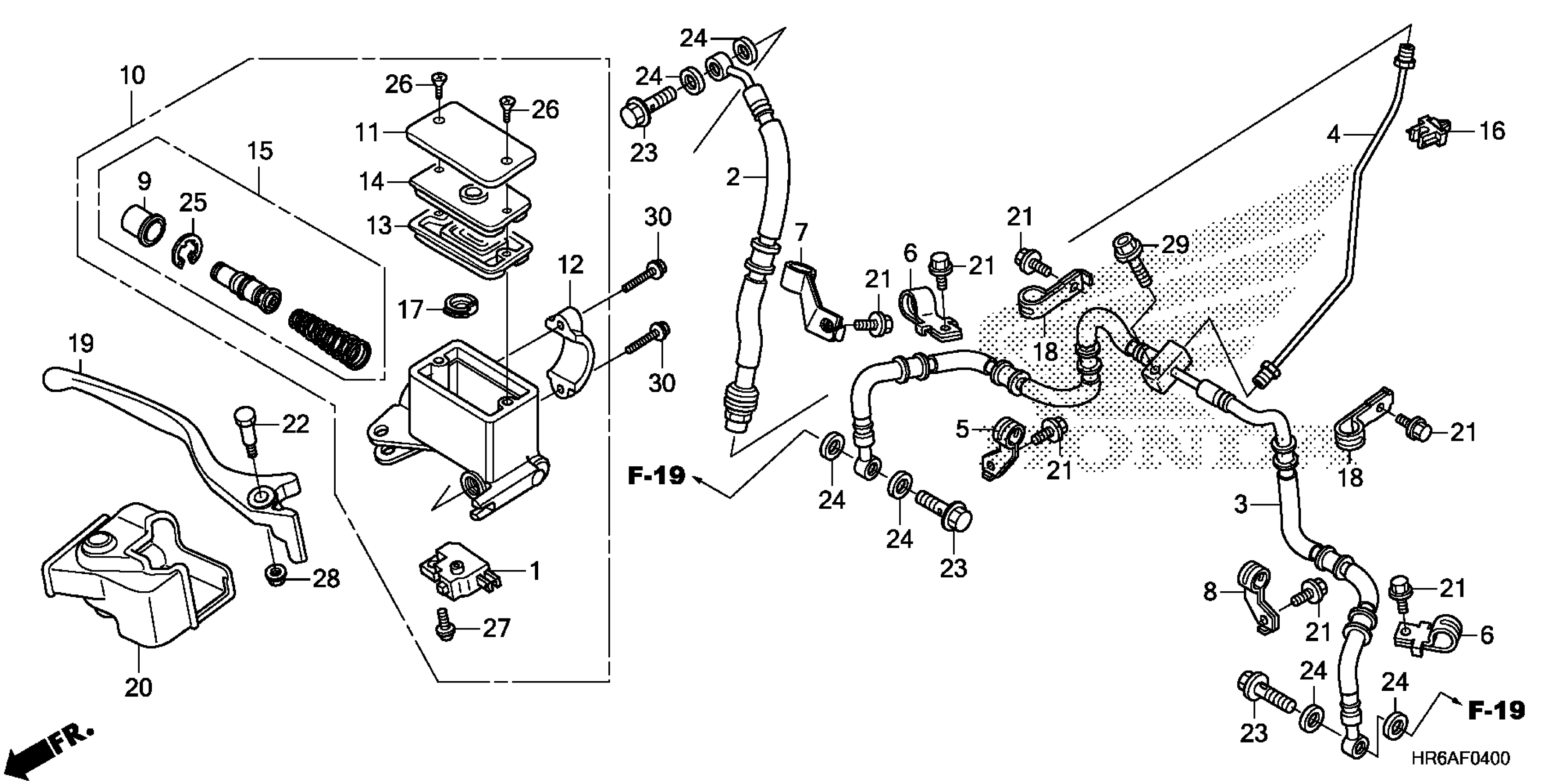Honda TRX500FA72AC (19) ALL-TERRAIN VEHICLE (ATV), USA, VIN# 1HFTE52C-K4400001 FRONT BRAKE MASTER CYLINDER Diagram