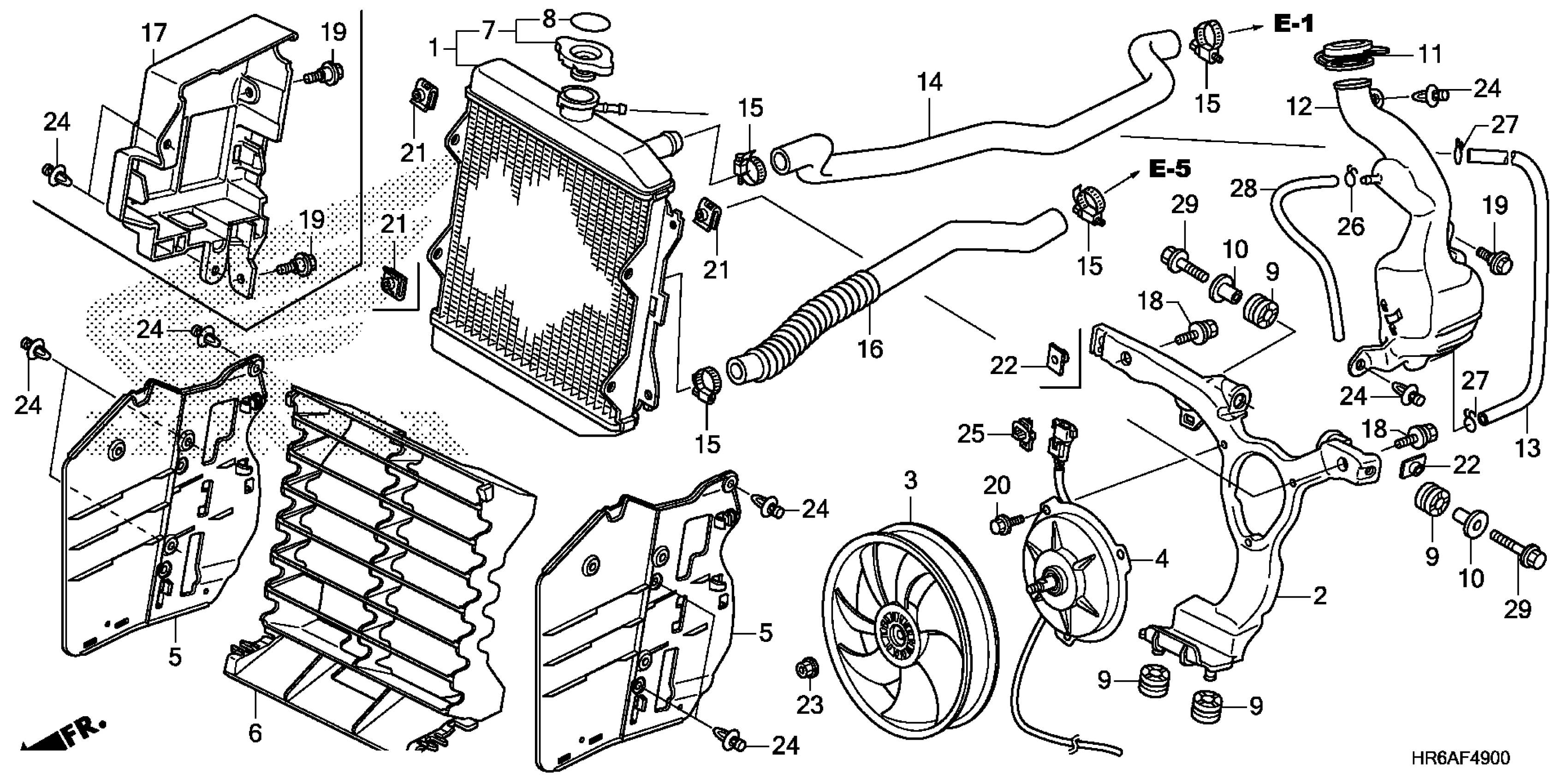 Honda TRX500FA72AC (19) ALL-TERRAIN VEHICLE (ATV), USA, VIN# 1HFTE52C-K4400001 RADIATOR Diagram