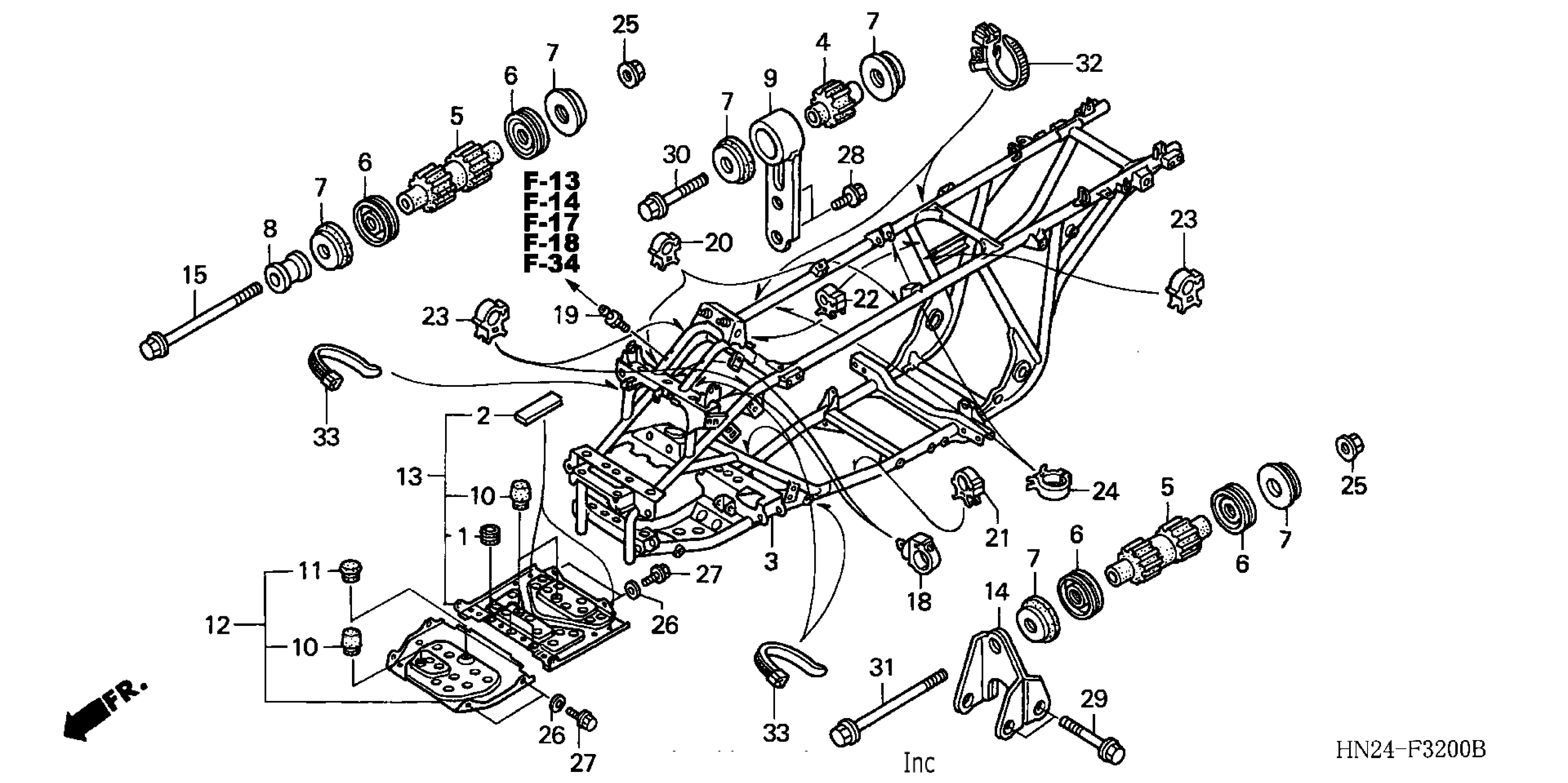 Honda TRX500FAA (04) FOURTRAX FOREMAN RUBICON, USA, VIN# 478TE260-44300001 TO 478TE260-44399999 FRAME (TRX500FA'01-'04/FGA'04) Diagram