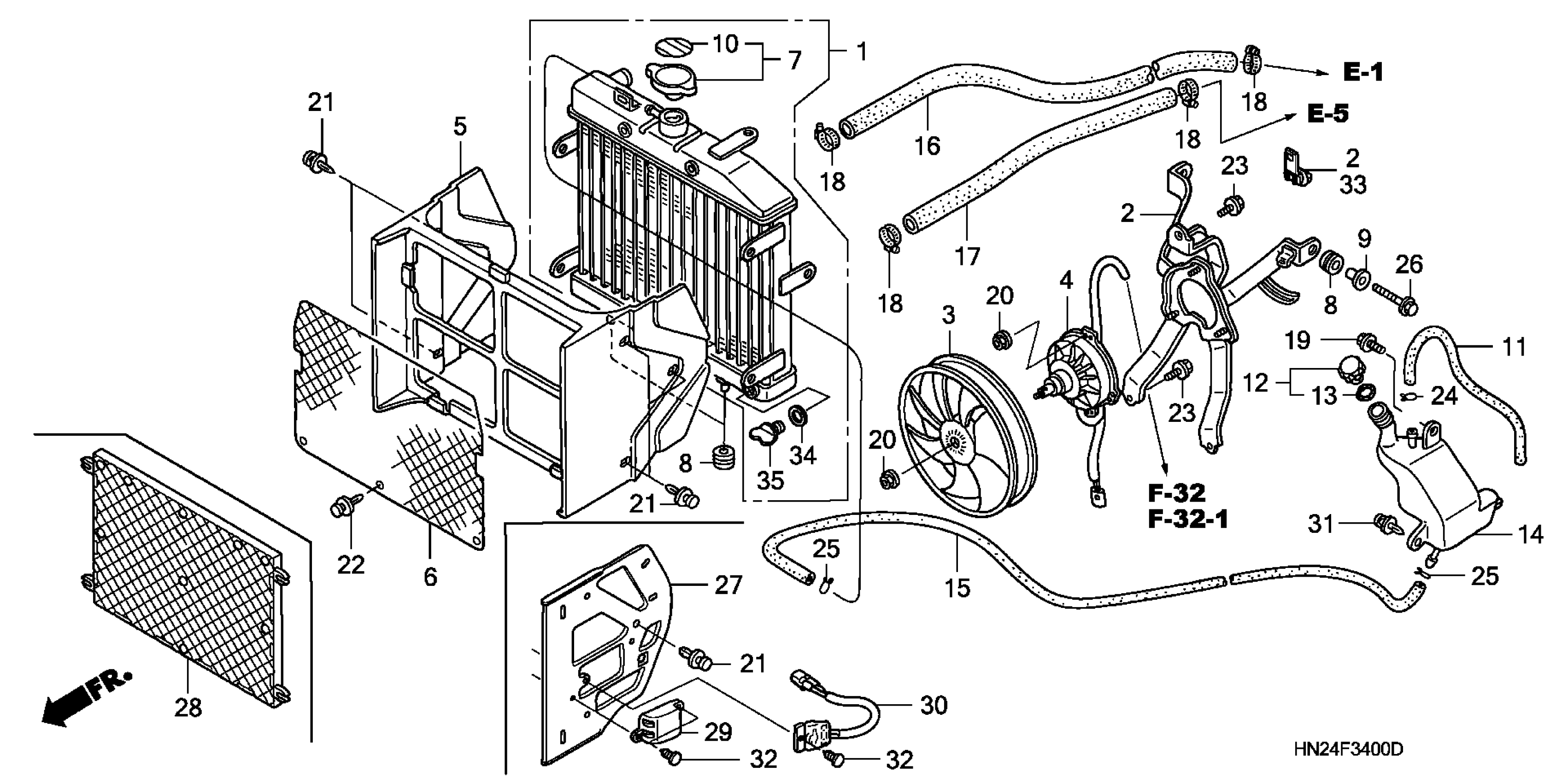 Honda TRX500FAA (04) FOURTRAX FOREMAN RUBICON, USA, VIN# 478TE260-44300001 TO 478TE260-44399999 RADIATOR Diagram