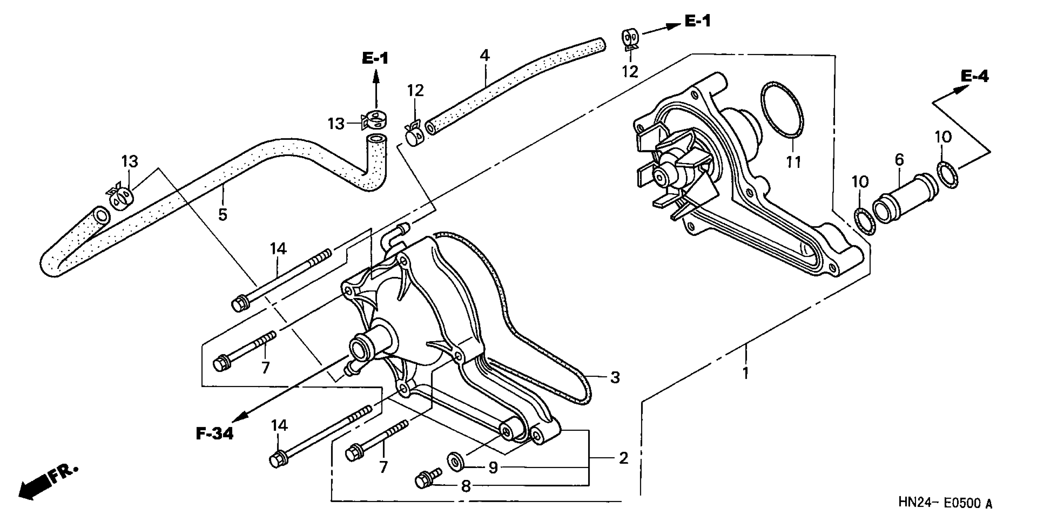 Honda TRX500FAA (04) FOURTRAX FOREMAN RUBICON, USA, VIN# 478TE260-44300001 TO 478TE260-44399999 WATER PUMP Diagram