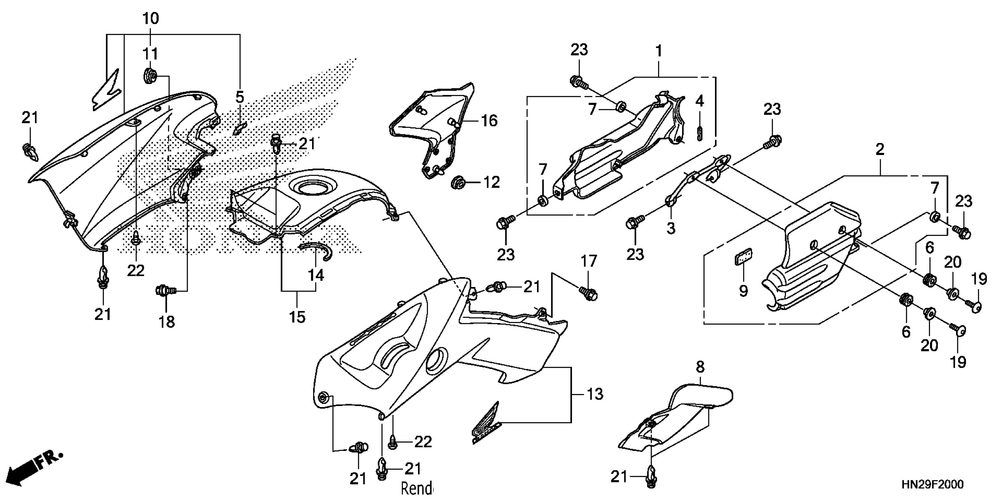 Honda TRX500FAAC (14) ALL-TERRAIN VEHICLE (ATV), USA, VIN# 1HFTE260-E4400001 BODY COVER Diagram