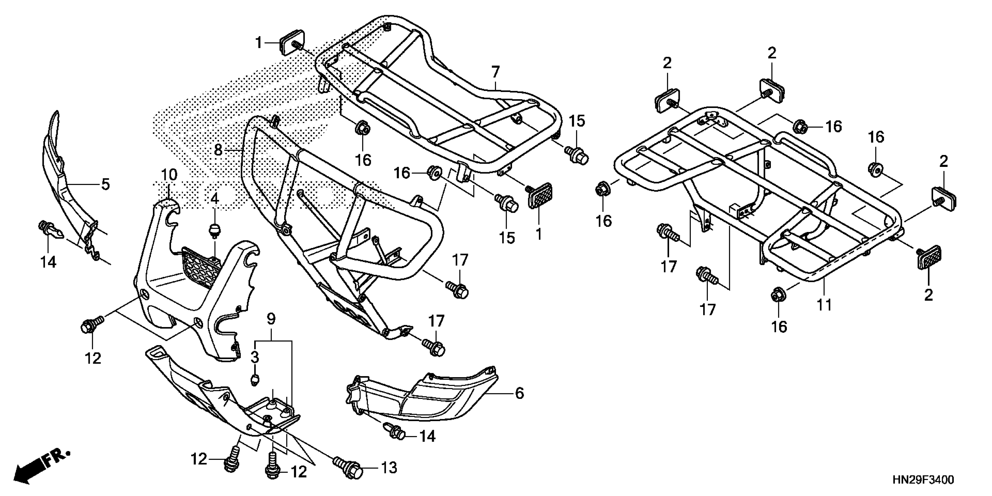 Honda TRX500FAAC (14) ALL-TERRAIN VEHICLE (ATV), USA, VIN# 1HFTE260-E4400001 CARRIER Diagram