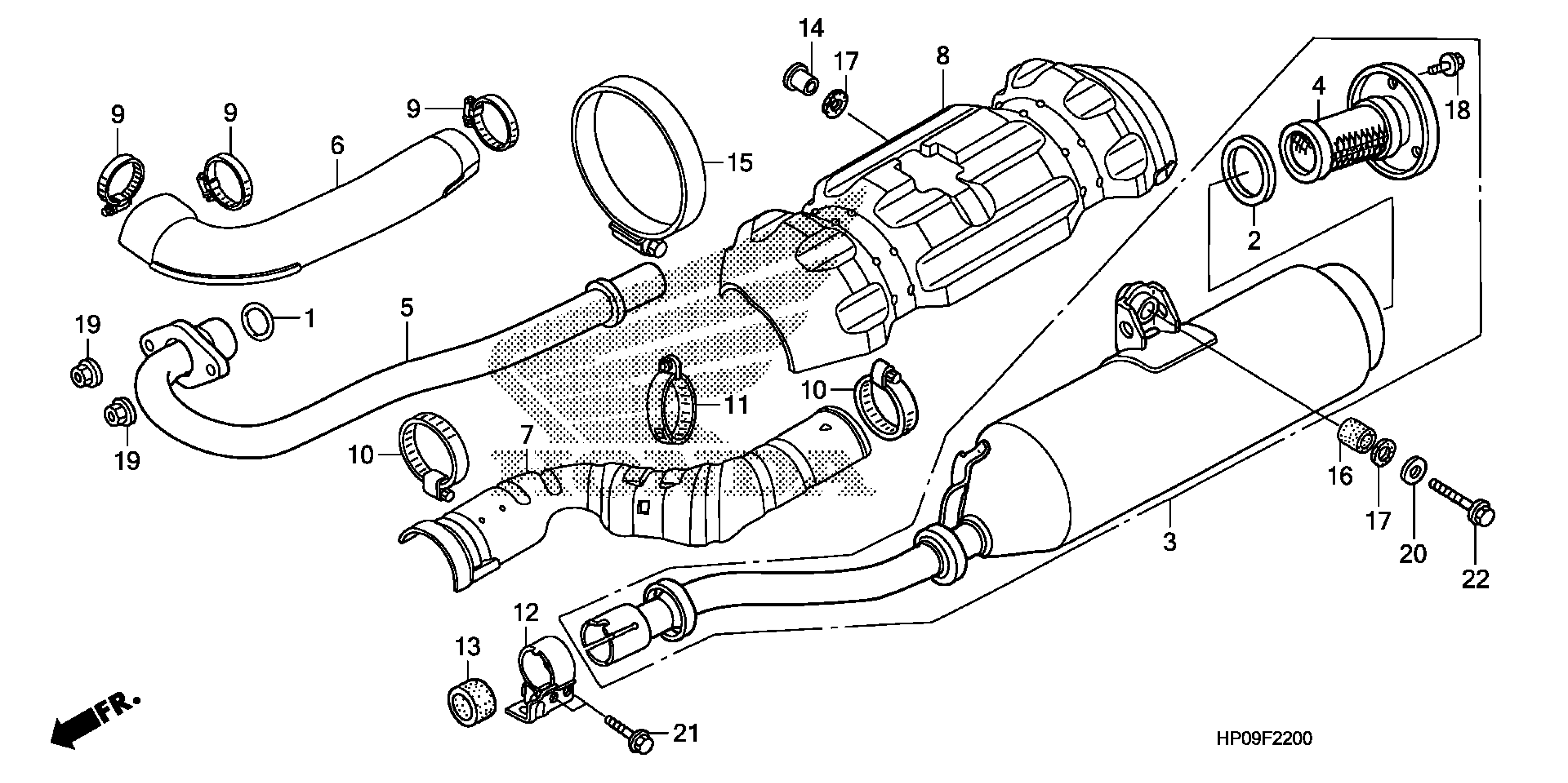 Honda TRX500FE2A (09) FOURTRAX FOREMAN ES, USA, VIN# 1HFTE315-94400001 TO 1HFTE315-94499999 EXHAUST MUFFLER Diagram