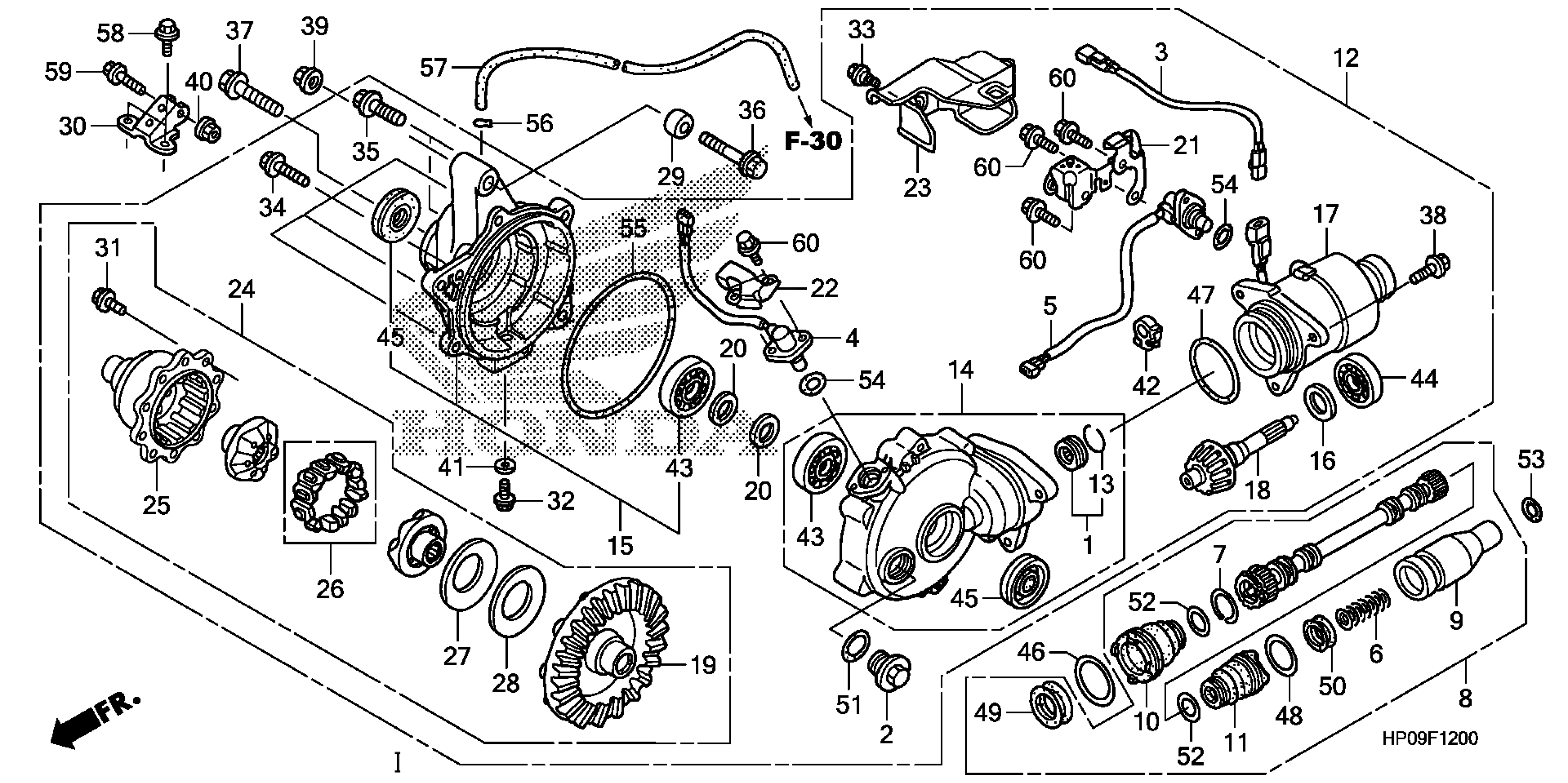 Honda TRX500FE2A (09) FOURTRAX FOREMAN ES, USA, VIN# 1HFTE315-94400001 TO 1HFTE315-94499999 FRONT FINAL GEAR Diagram