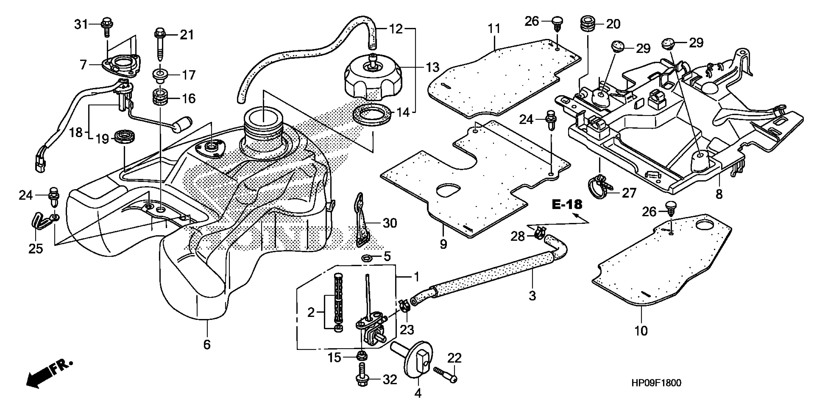 Honda TRX500FE2A (09) FOURTRAX FOREMAN ES, USA, VIN# 1HFTE315-94400001 TO 1HFTE315-94499999 FUEL TANK Diagram