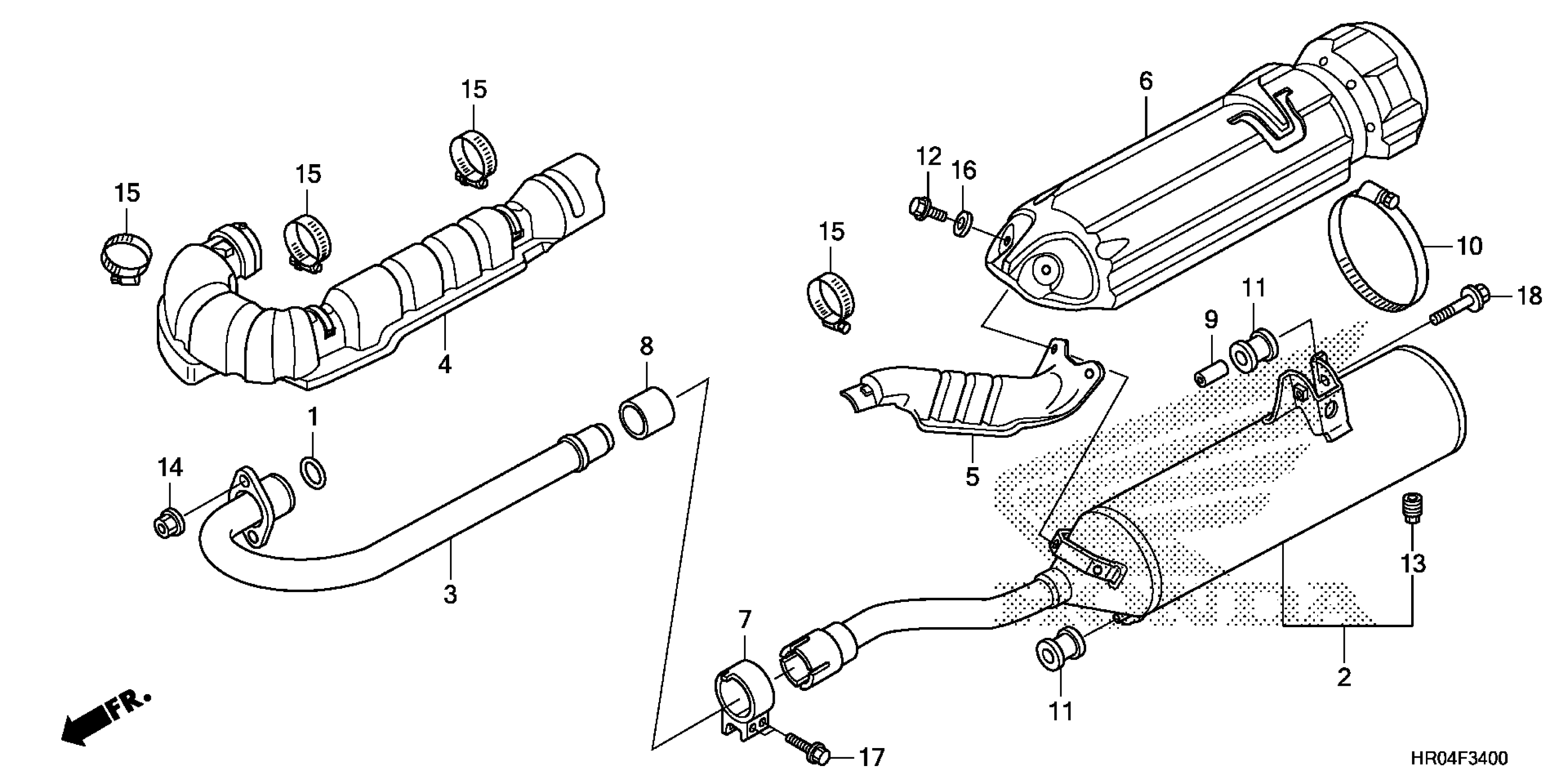 Honda TRX500FE2AC (13) FOREMAN 4X4 ES, USA, VIN# 1HFTE385-D4100001 EXHAUST MUFFLER Diagram