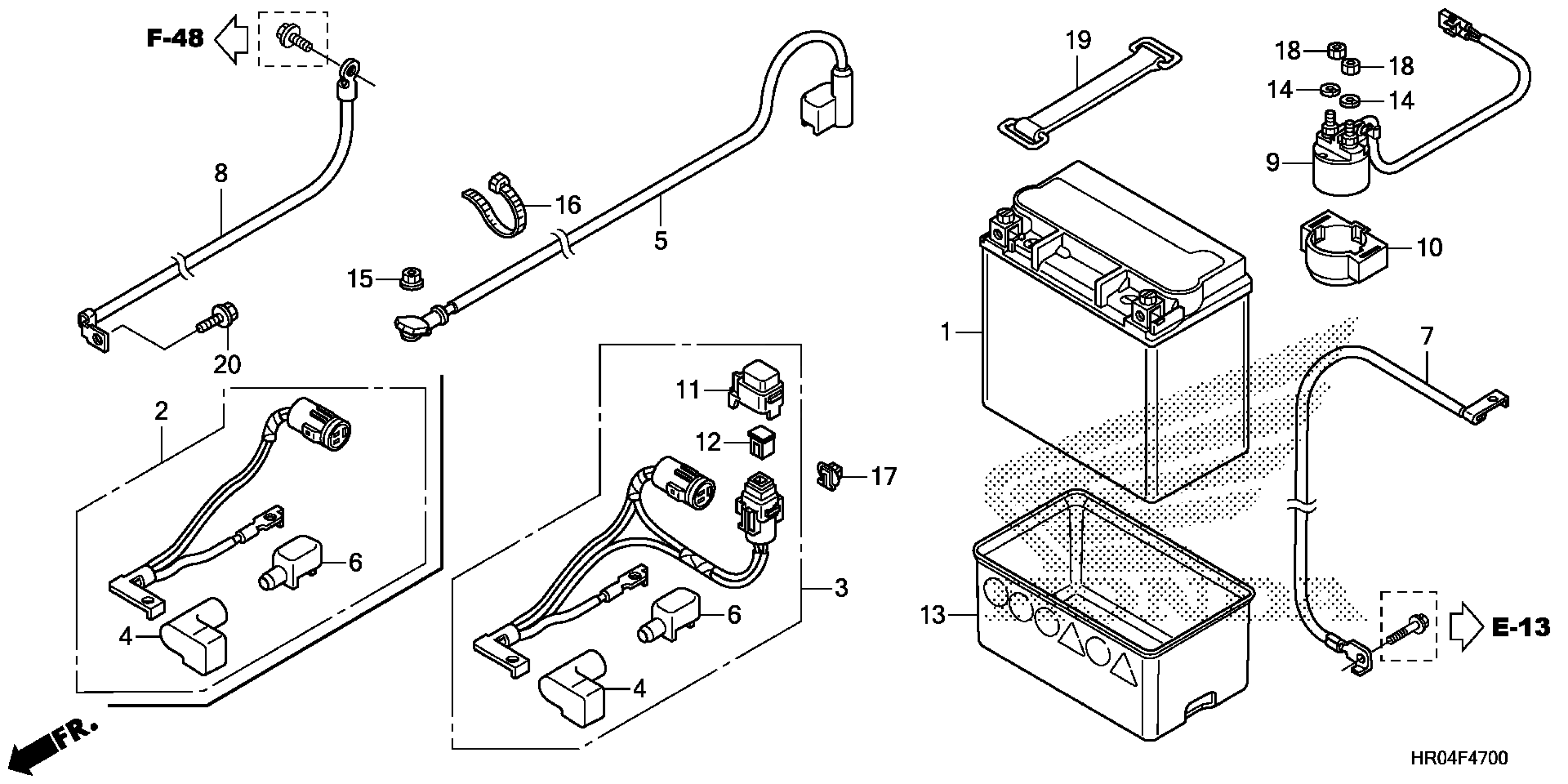 Honda TRX500FEAC (13) FOREMAN 4X4 ES, USA, VIN# 1HFTE387-D4100001 BATTERY Diagram