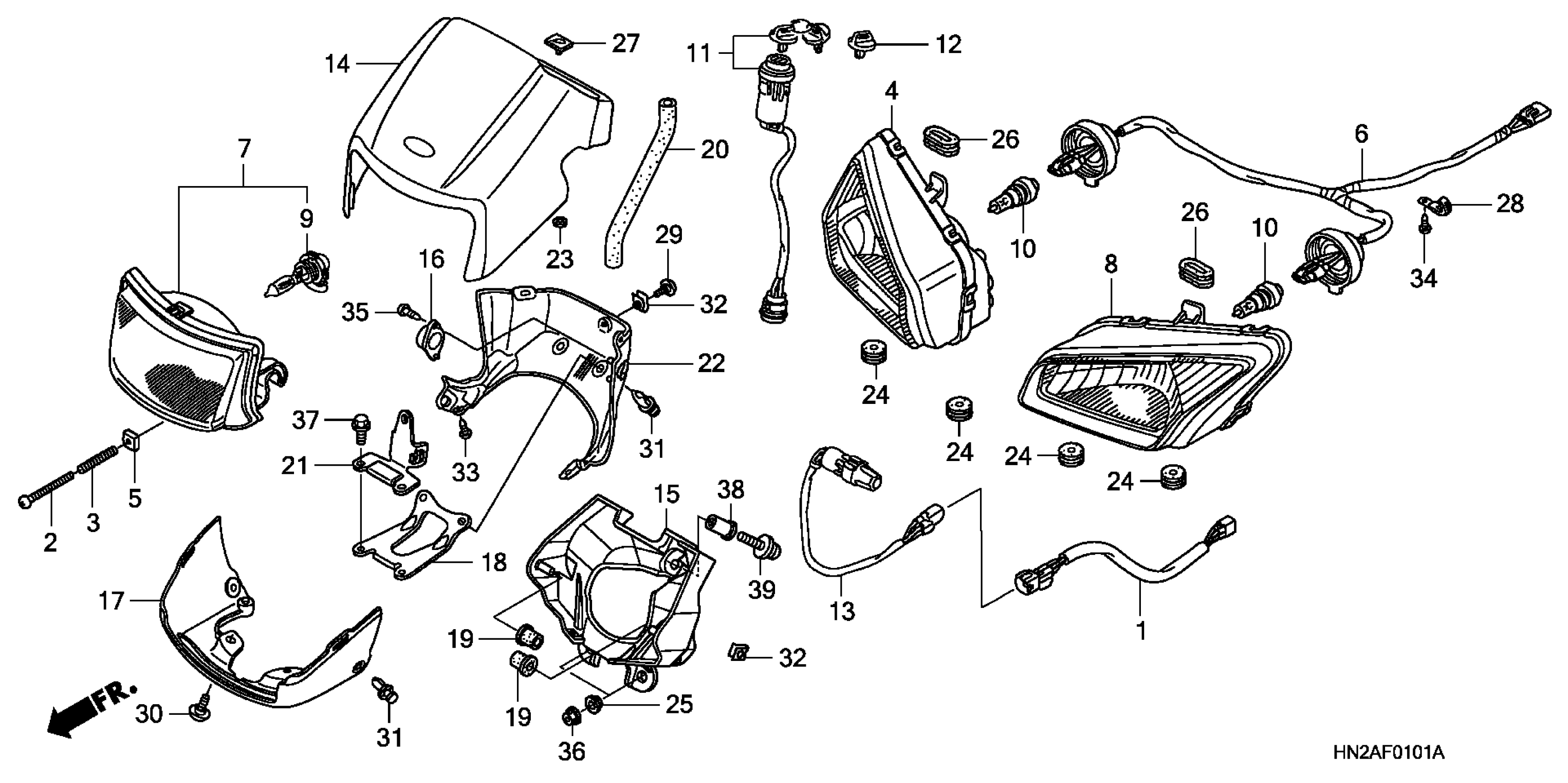 Honda TRX500FGAA (07) RUBICON GPSCAPE, USA, VIN# 1HFTE264-74600001 TO 1HFTE264-74699999 HEADLIGHT ('07-) Diagram