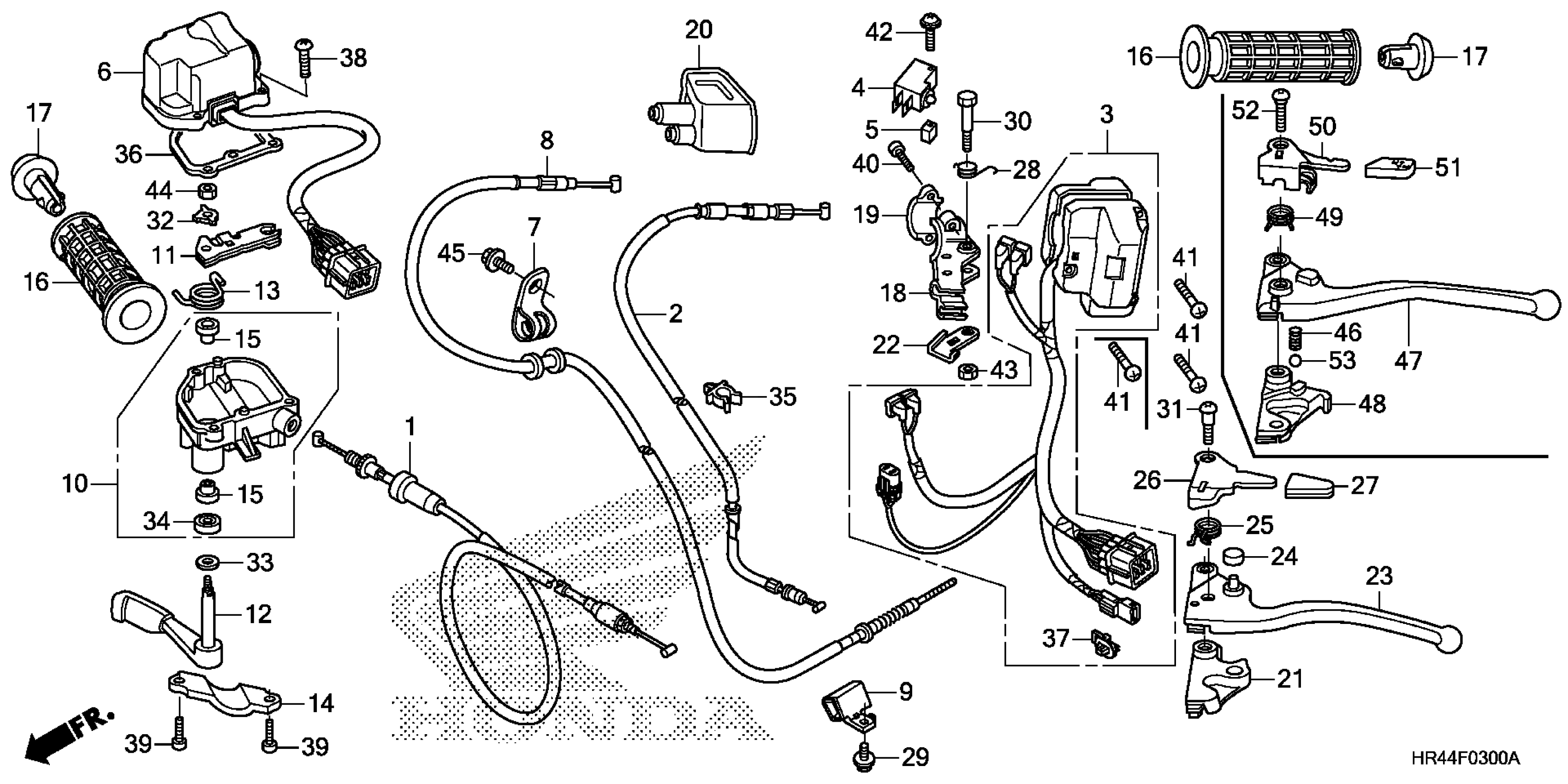 Honda TRX500FM12AC (14) TRX500FM1, USA, VIN# 1HFTE441-E4000001 TO 1HFTE441-E4099999 SWITCH + CABLE Diagram