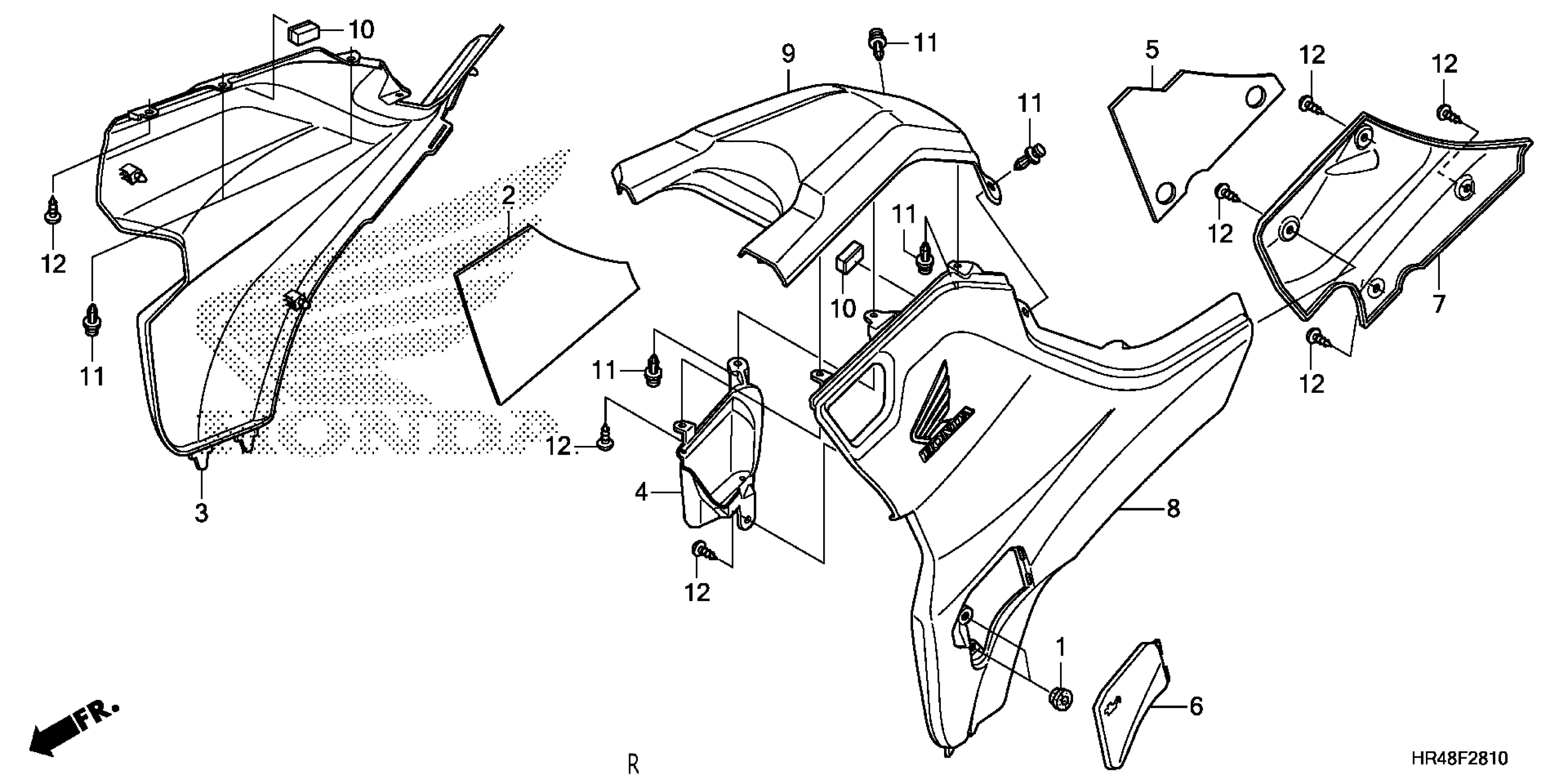 Honda TRX500FM22AC (19) ALL-TERRAIN VEHICLE (ATV), USA, VIN# 1HFTE50C-K4500001 SIDE COVER@TANK COVER Diagram