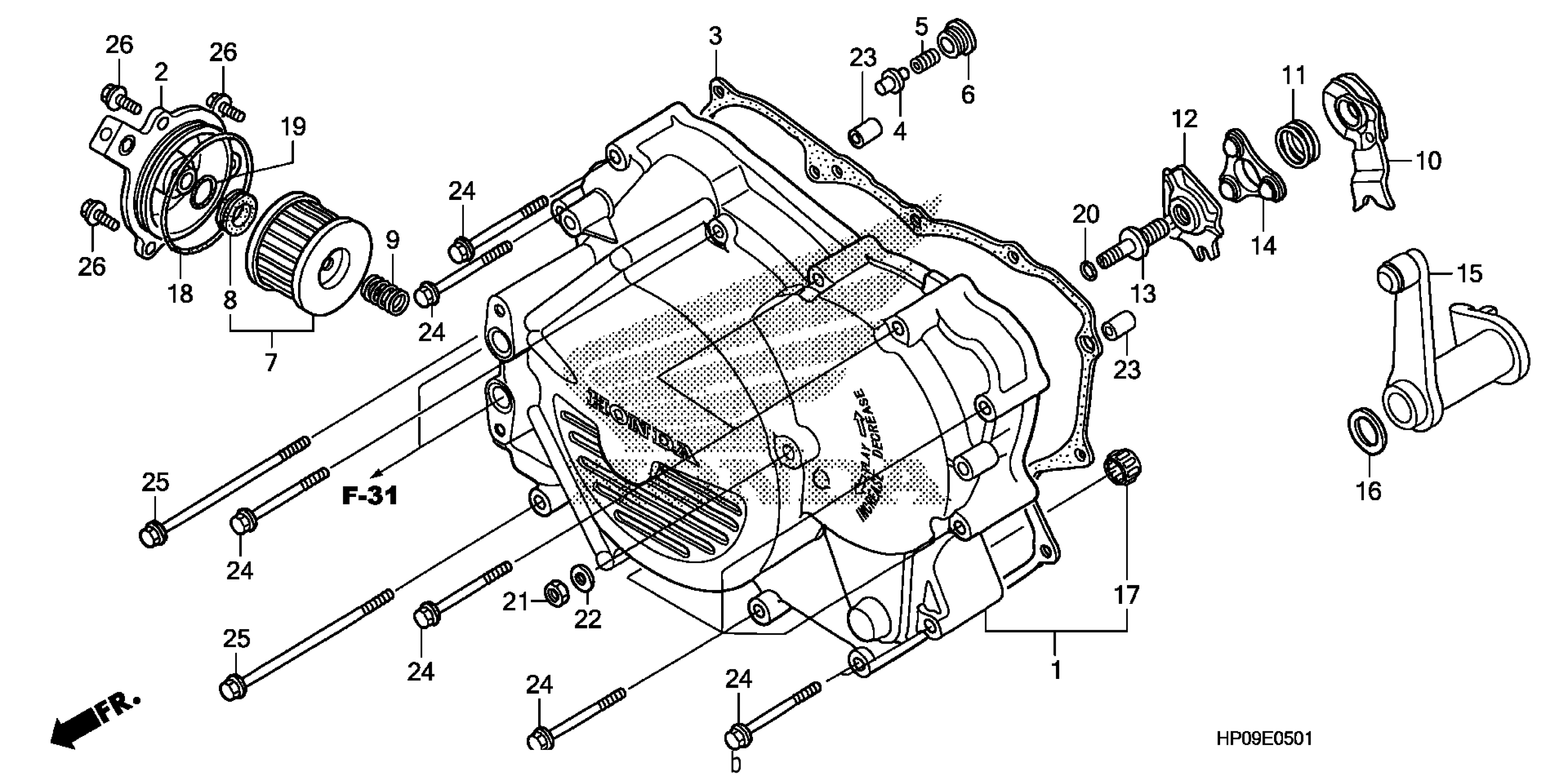Honda TRX500FM2A (09) FOURTRAX FOREMAN, USA, VIN# 1HFTE311-94400001 TO 1HFTE311-94499999 FRONT CRANKCASE COVER (TRX500FM/FPM) Diagram