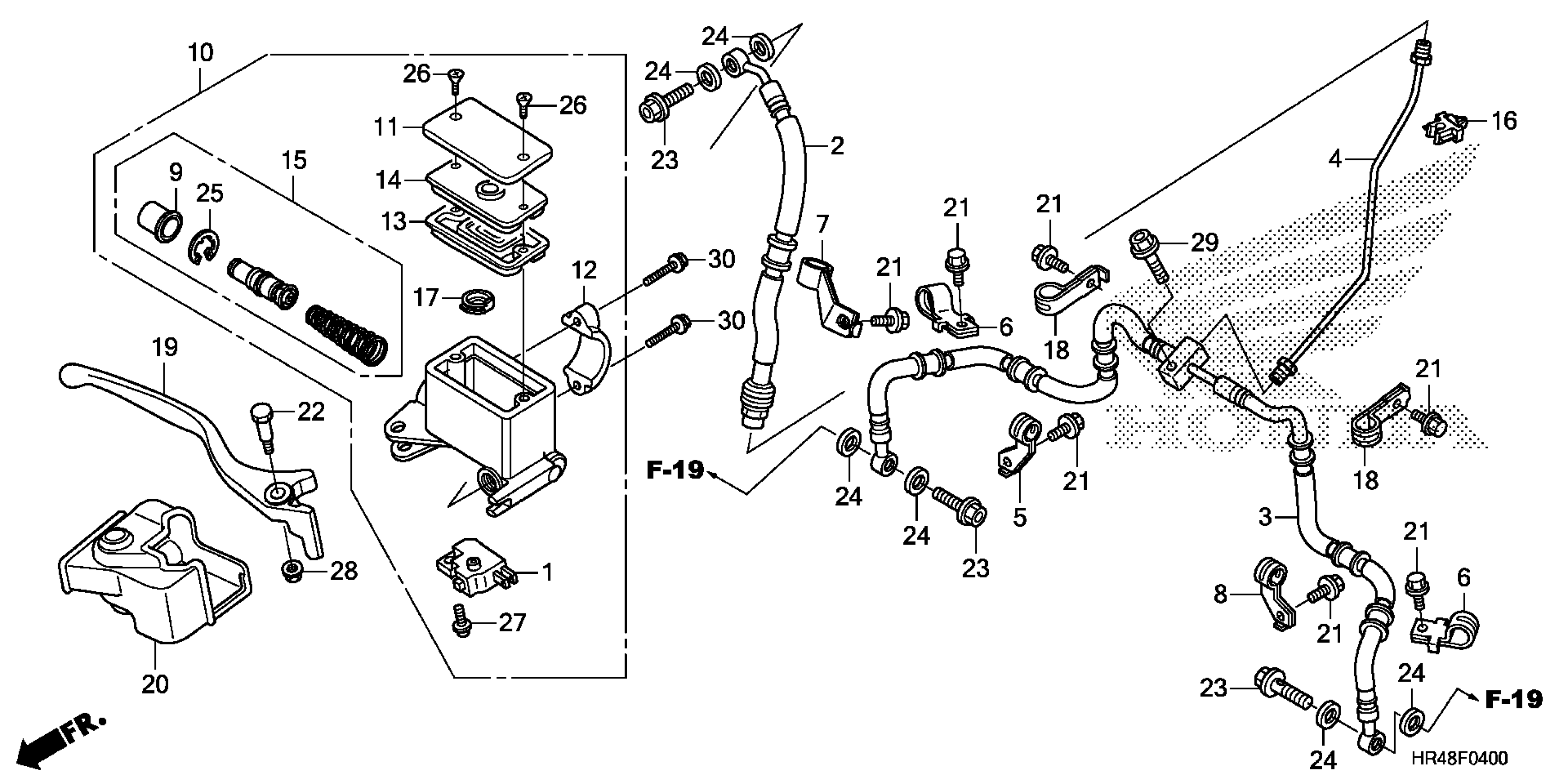 Honda TRX500FM2AC (19) ALL-TERRAIN VEHICLE (ATV), USA, VIN# 1HFTE503-K4500001 FRONT BRAKE MASTER CYLINDER Diagram