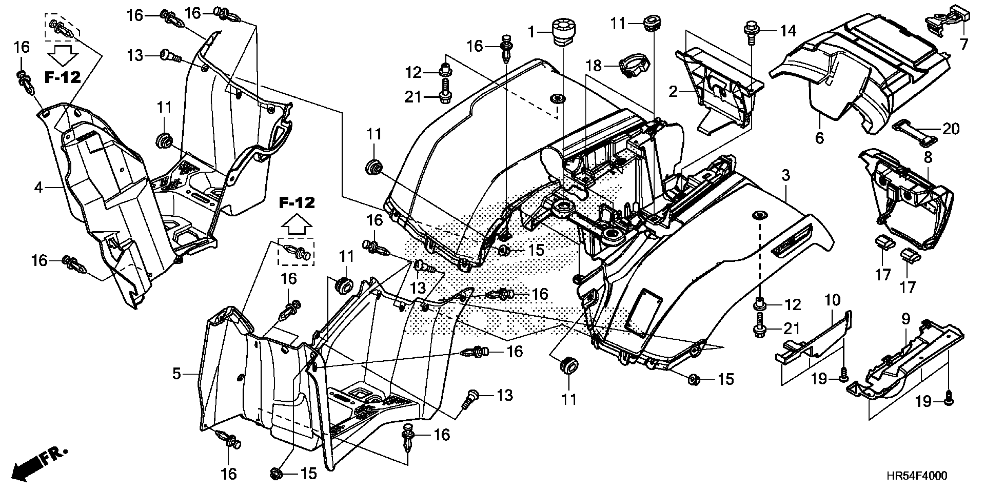 Honda TRX500FM5AC (16) TRX500FM5, USA, VIN# 1HFTE450-G4100001 TO 1HFTE450-G4199999 REAR FENDER Diagram