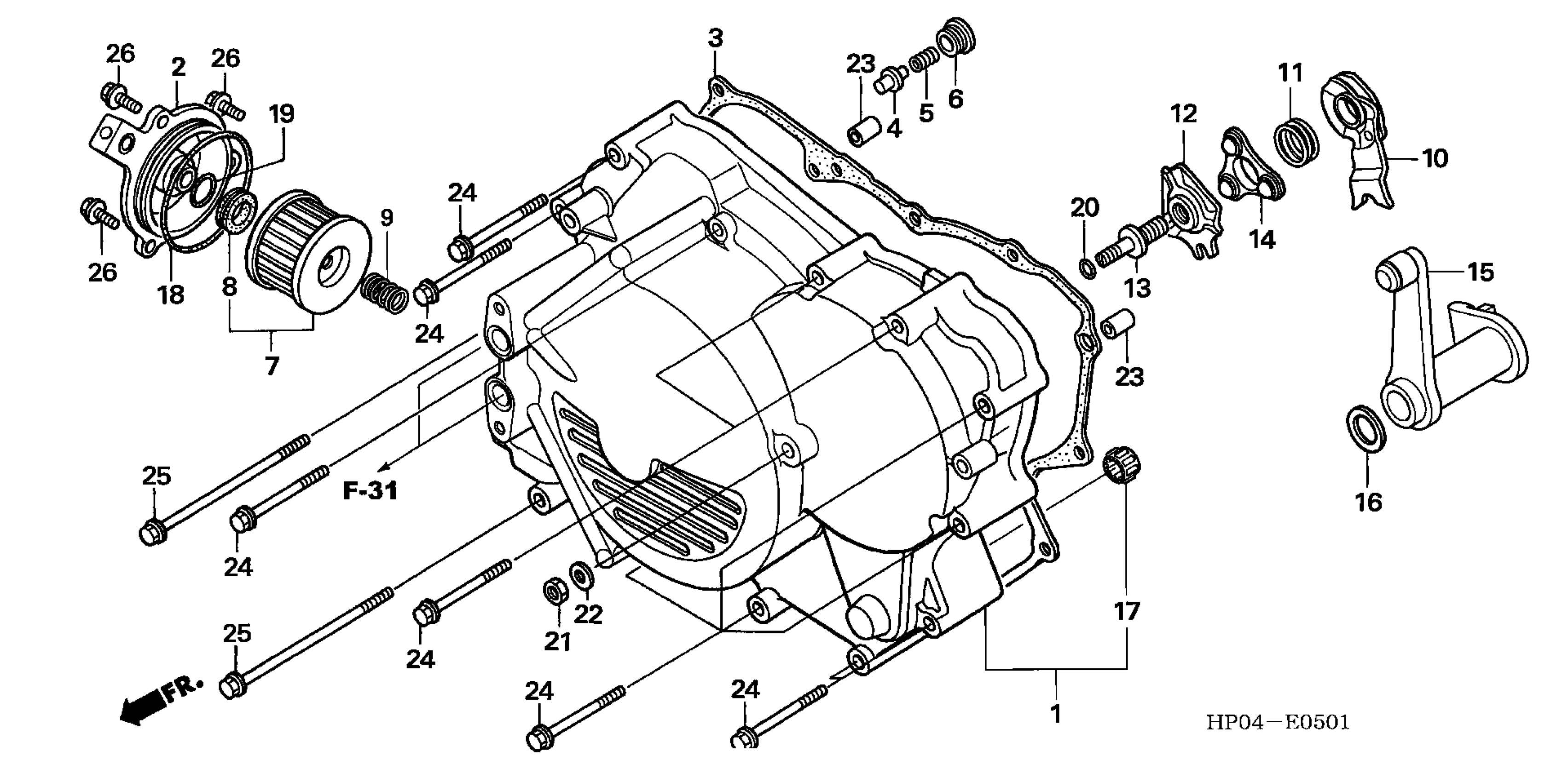 Honda TRX500FMA (06) FOURTRAX FOREMAN 4X4, USA, VIN# 1HFTE310-64100001 FRONT CRANKCASE COVER (TRX500FM/TM) Diagram
