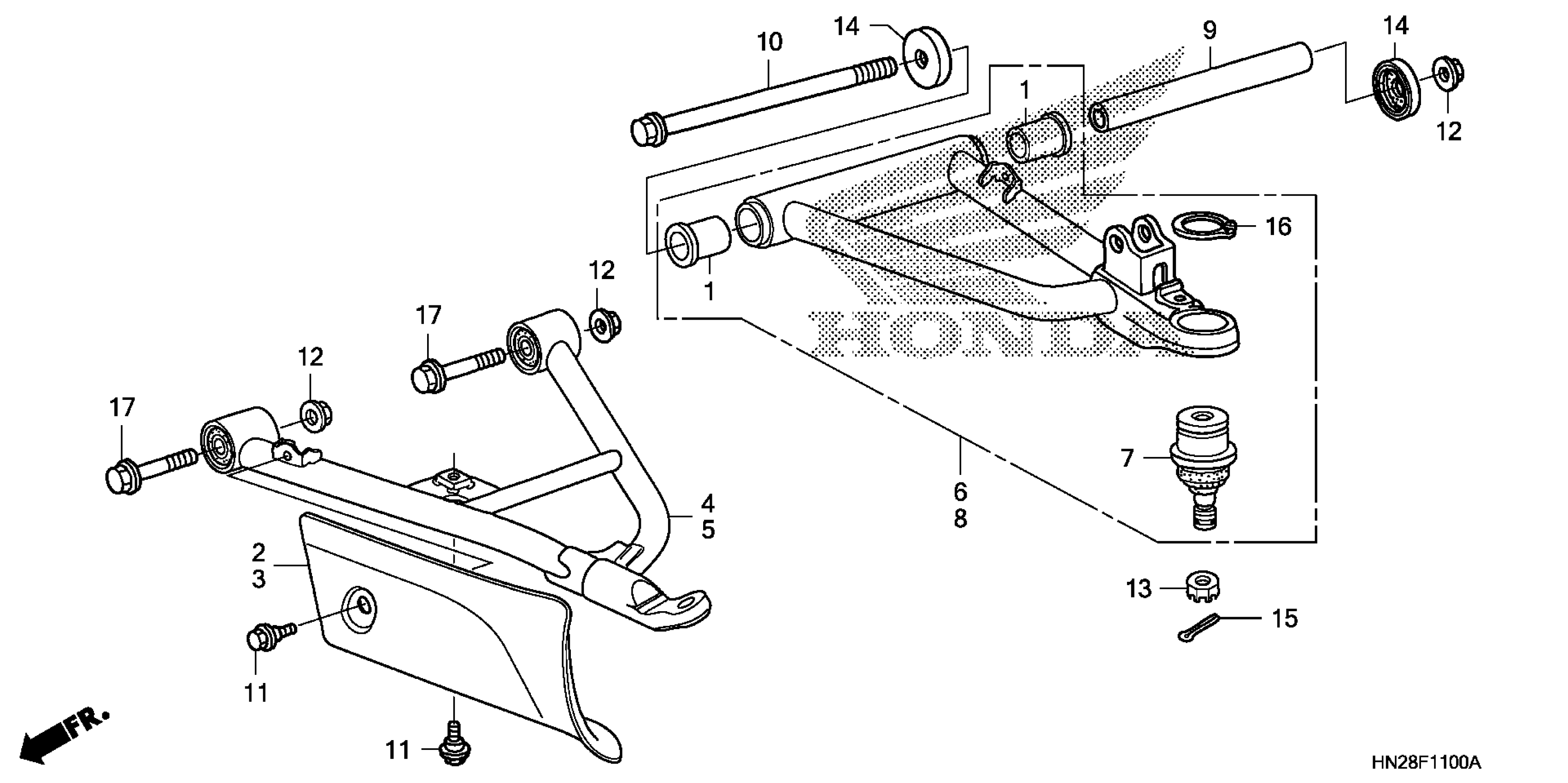 Honda TRX500FPAA (11) FOURTRAX FOREMAN RUBICON, USA, VIN# 1HFTE26E-B4100001 FRONT ARM Diagram