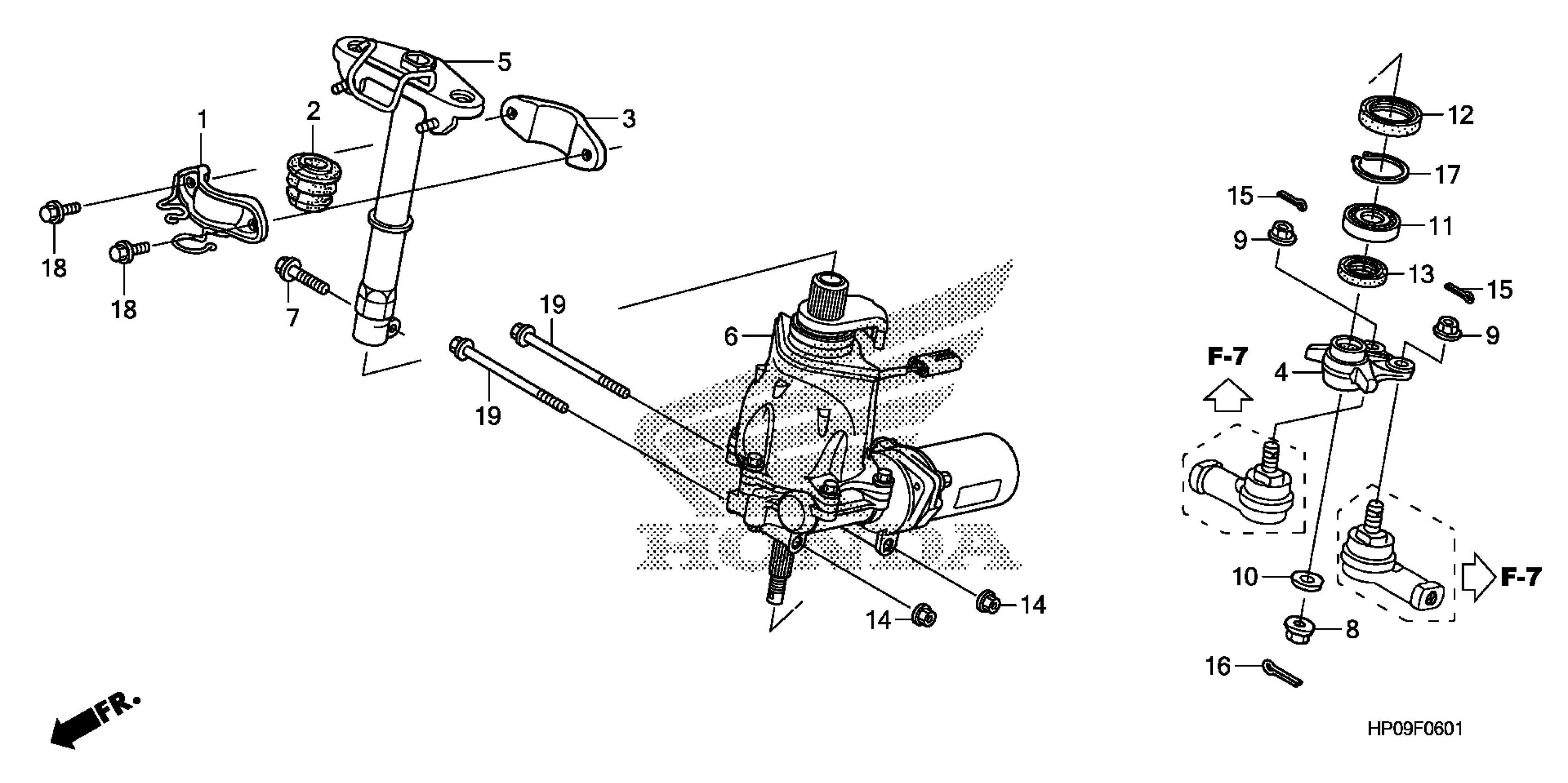 Honda TRX500FPE2A (09) FOREMAN P/S ES, USA, VIN# 1HFTE31J-94400001 TO 1HFTE31J-94499999 STEERING SHAFT (POWER STEERING) (TRX500FPE/FPM) Diagram